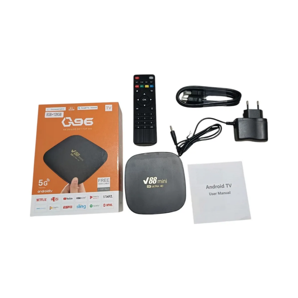 Con el Android TV Box Q96 4K Ultra HD Smart disfrutarás de un universo de entretenimiento ilimitado desde la comodidad de tu hogar. Equipado con 8GB de RAM y 128GB de almacenamiento interno, este dispositivo te permite acceder a más de 3,000 aplicaciones como Netflix, Prime Video, Disney+, YouTube, Spotify y muchas más. Su potente rendimiento garantiza una experiencia fluida, rápida y sin interrupciones, mientras que su resolución 4K Ultra HD ofrece imágenes nítidas y colores vibrantes. Su diseño compacto y portátil te permite llevarlo a cualquier parte, y gracias a sus múltiples puertos y conectividad Wi-Fi, es fácil de instalar y usar. Ideal para quienes buscan transformar su televisor en un verdadero centro multimedia inteligente.