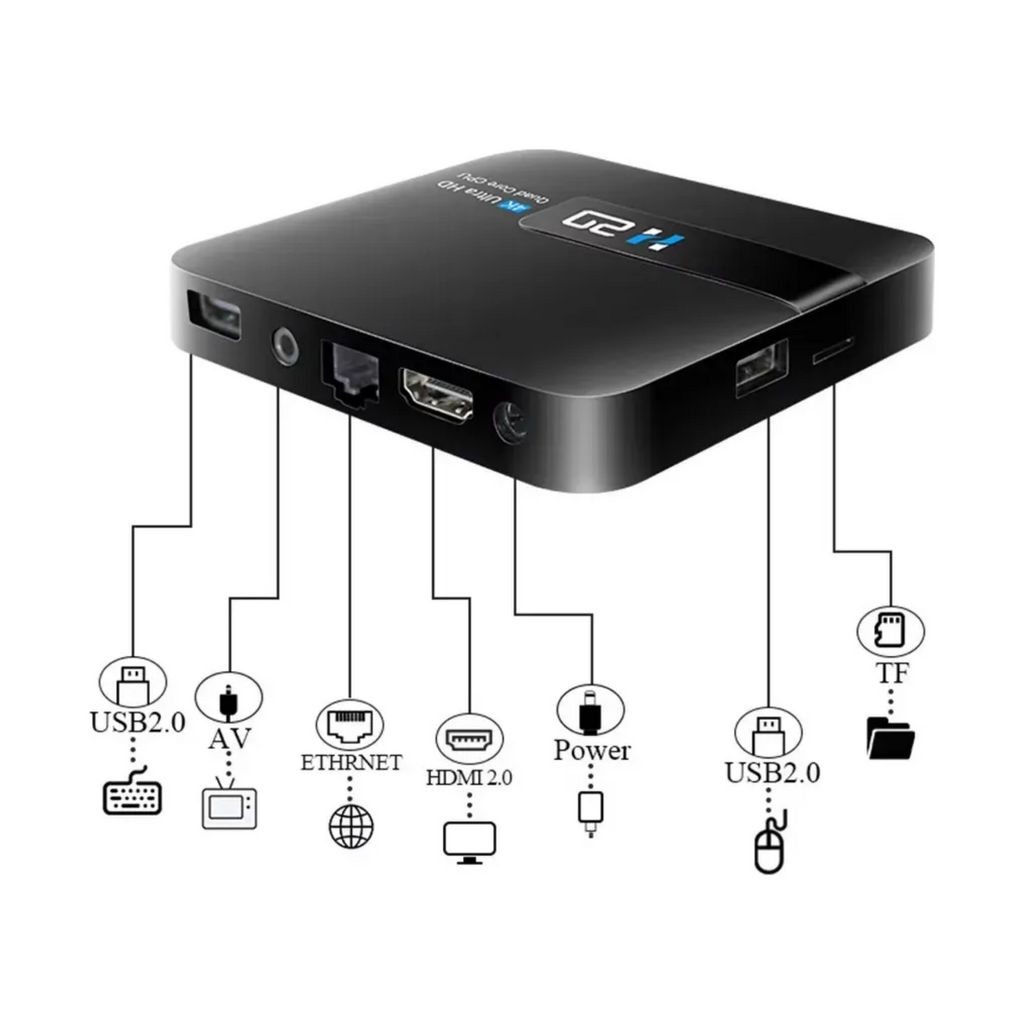 Transforma tu televisor en un verdadero centro de entretenimiento con el Smart Android TV Box H20PRO. Este potente dispositivo con sistema Android 10 te brinda acceso a miles de aplicaciones como Netflix, YouTube y mucho más, ideal para disfrutar de series, películas, juegos y contenido en línea sin límites. Su resolución Ultra HD 6K ofrece una calidad de imagen vibrante y detalles sorprendentes, mientras que su conexión Wifi 6 garantiza una transmisión fluida y sin interrupciones. Además, cuenta con puertos HDMI, USB y ranura para tarjeta SD, brindando gran versatilidad para conectar todo lo que necesites. El H20PRO está diseñado para quienes buscan rendimiento, comodidad y tecnología en un solo dispositivo compacto.