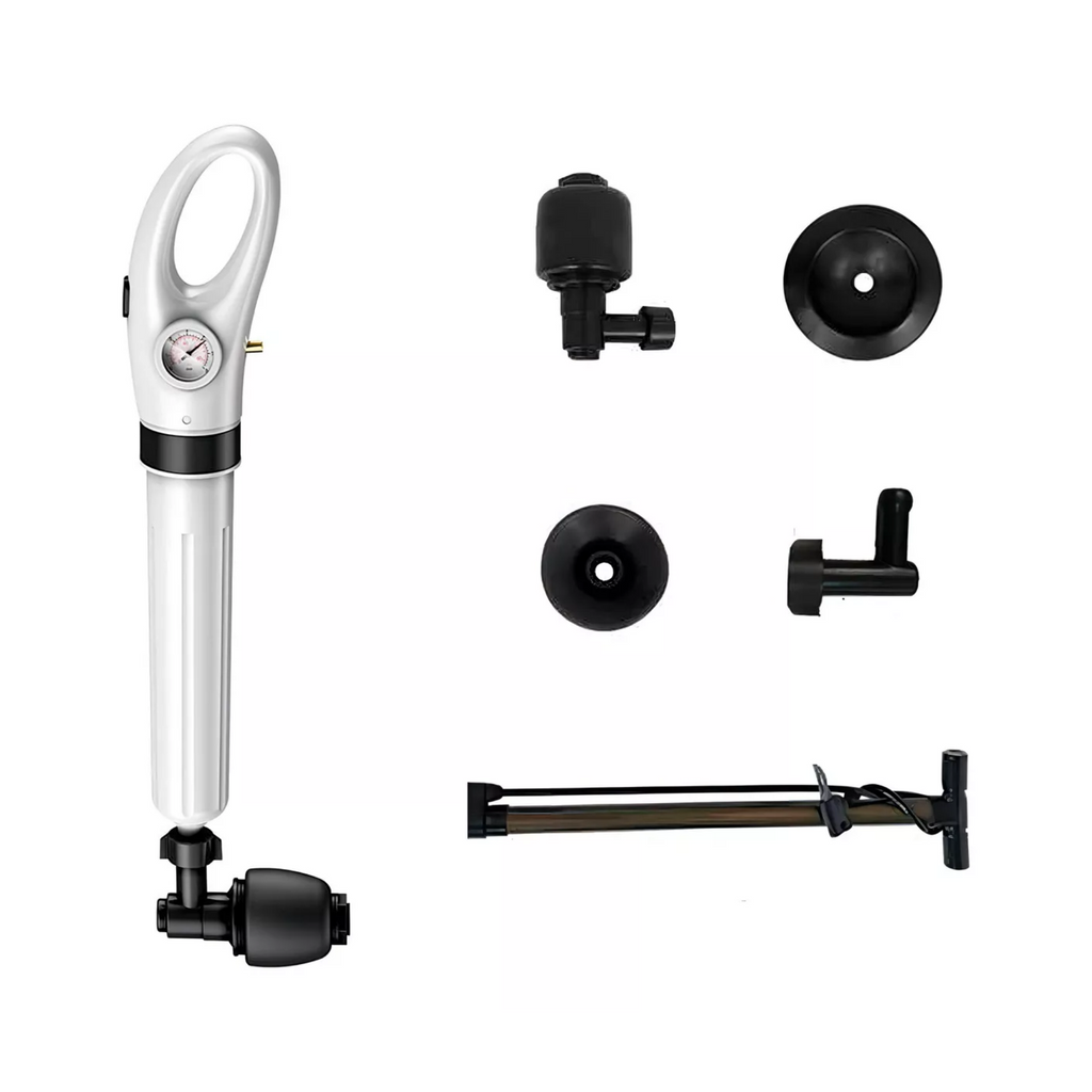 Potente, práctico y fácil de usar, este sistema de limpieza a presión permite eliminar obstrucciones comunes en tuberías de manera eficiente y rápida. Su diseño visual con barómetro facilita la lectura de presión en todo momento y permite ajustarla según la necesidad, garantizando resultados óptimos. Gracias a sus múltiples cabezales de dragado intercambiables, es ideal para inodoros, fregaderos, duchas y más. Fabricado con materiales resistentes y ecológicos como ABS de ingeniería y caucho natural, ofrece larga durabilidad, resistencia a la corrosión y fácil limpieza. El mango antideslizante asegura una manipulación cómoda y segura.