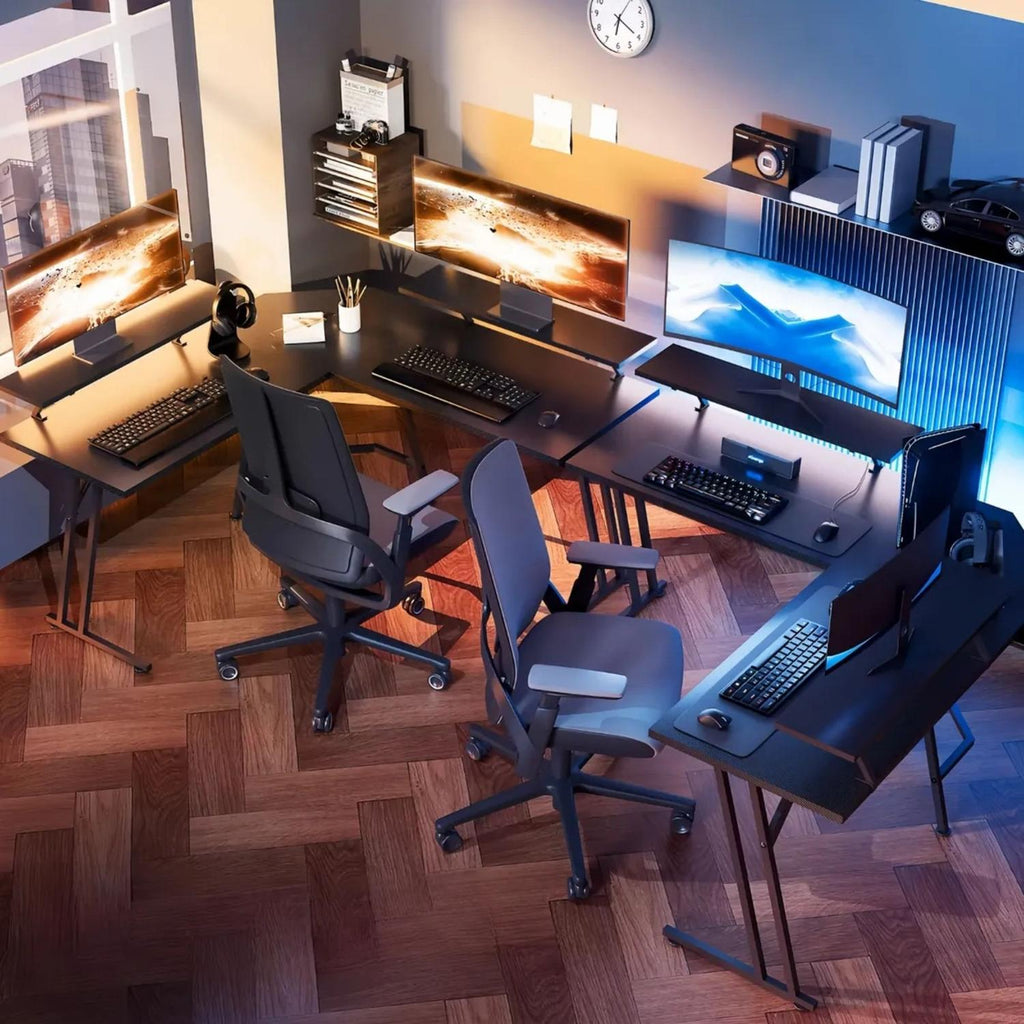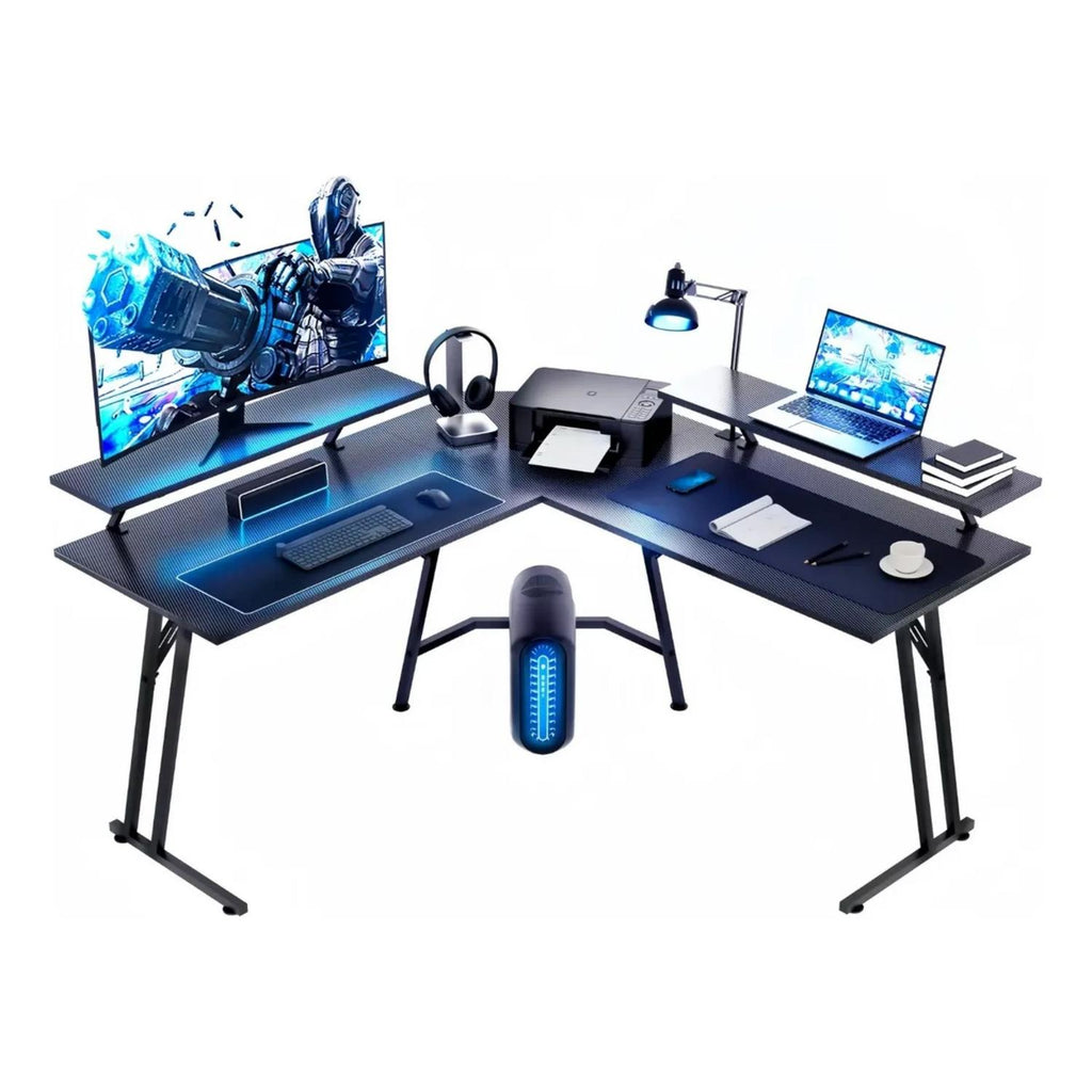 Escritorio Esquinero Forma L Estantes Gamer 72x1x50 CM Negro