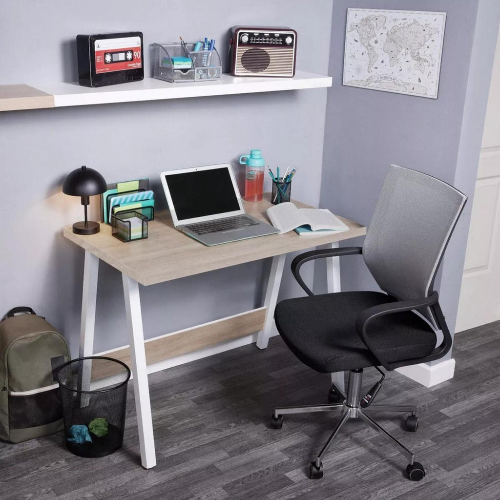 Este escritorio destaca por su fabricación en melamina blanca y metal, lo que garantiza su durabilidad y resistencia en el uso diario. Las terminaciones metálicas en las patas brindan una mayor estabilidad, asegurando un soporte sólido y seguro. Su diseño ergonómico y funcional proporciona comodidad durante largas horas de trabajo.No importa si lo necesitas para tu hogar u oficina, el escritorio es una elección inteligente que combina estilo, funcionalidad y calidad. Aprovecha esta oportunidad y lleva tu productividad al siguiente nivel con este elegante y práctico escritorio. ¡No te lo pierdas! Medidas: 75 x 100 x 58 cm. Material: Melamina / Metal. Color: Blanco / Oak. Producto 100% Recomendado. Garantia de 6 Meses.