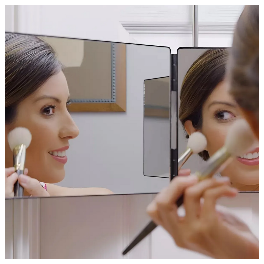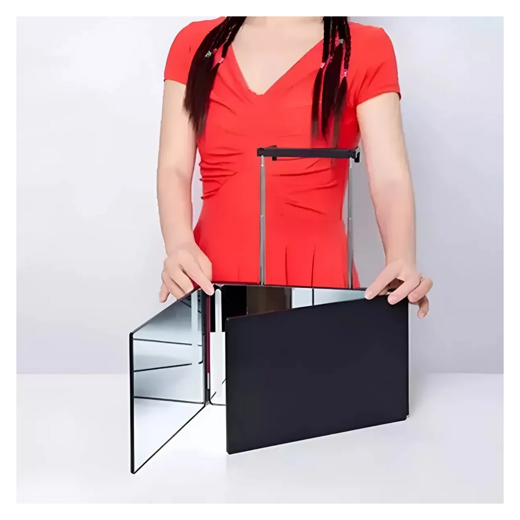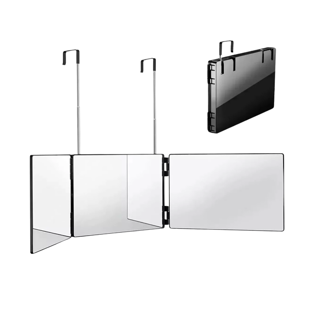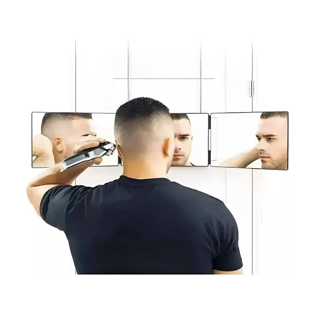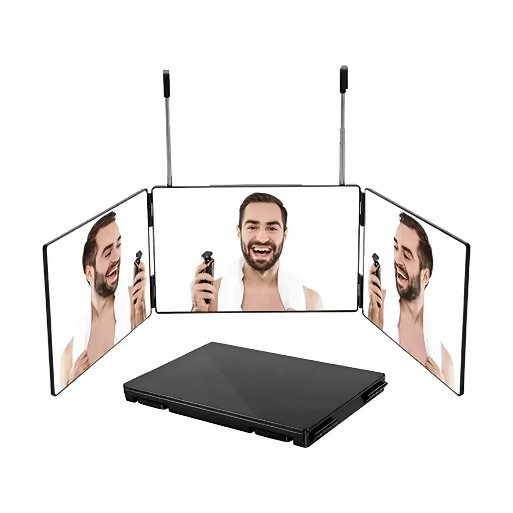 El Espejo Triple 360° con marco negro es la herramienta perfecta para cortes de pelo precisos gracias a su diseño de tres espejos ajustables que permiten visualizar todos los ángulos de la cabeza. Fabricado con vidrio real y marco de ABS, garantiza una imagen clara y sin distorsiones. Su bisagra reforzada y tecnología mejorada aportan resistencia y durabilidad, además de facilitar un uso manos libres con soporte ajustable para adaptarse a cualquier altura y puerta.