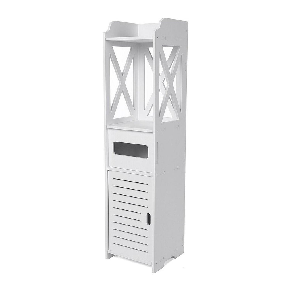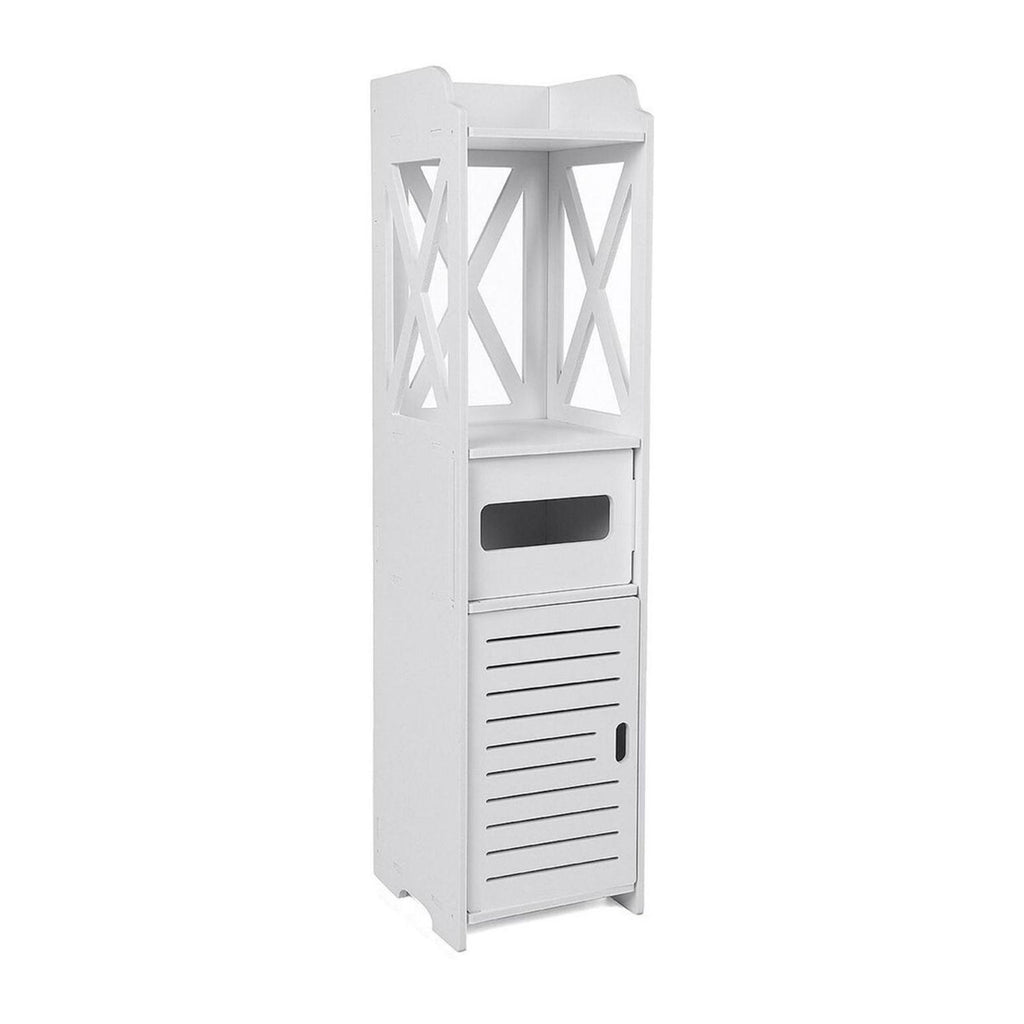 Organice su baño o lavadero con este elegante gabinete en un acabado blanco antiguo que se combina con su decoración. Coloque ropa de cama, toallas y elementos esenciales de aseo en los cómodos cajones para un aspecto ordenado, y use el área del Gabinete para medicamentos, artículos de tocador y cosméticos. Este armario blanco añade un toque de aspecto limpio a su baño, y su diseño vertical maximiza su espacio de almacenamiento sin acaparar su espacio de piso. Diseñado para baños y lavaderos, este armario se puede mostrar en cualquier lugar que necesite almacenamiento adicional. Medida Total: 80cm Alto, 20 cm ancho, 18 cms profundidad. Material: MDF. Estante ideal para organizar su baño. Color disponible: Blanco. Producto 100% recomendado. Garantía Legal de 6 meses.