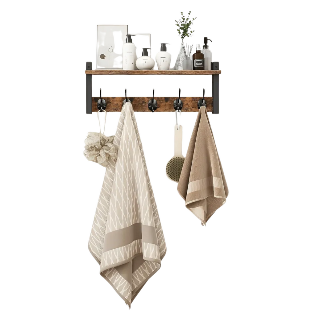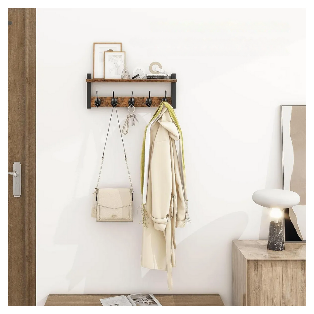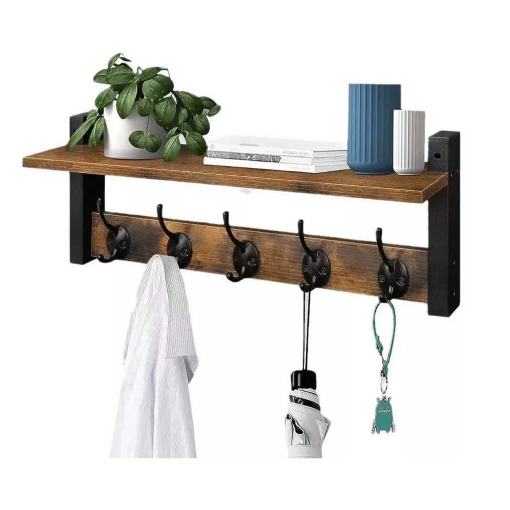 Dale un toque moderno y funcional a tus espacios con el Estante Repisa Perchero de Pared Flotante, diseñado para combinar estilo y practicidad. Su estructura en madera aporta resistencia y calidez, mientras que sus dimensiones de 43,5 x 19,2 x 11,5 cm permiten ubicarla en cualquier habitación, optimizando el espacio sin sacrificar la estética. Perfecta para organizar objetos, colgar prendas o exhibir decoraciones, esta repisa se adapta a salas, oficinas o dormitorios con facilidad.