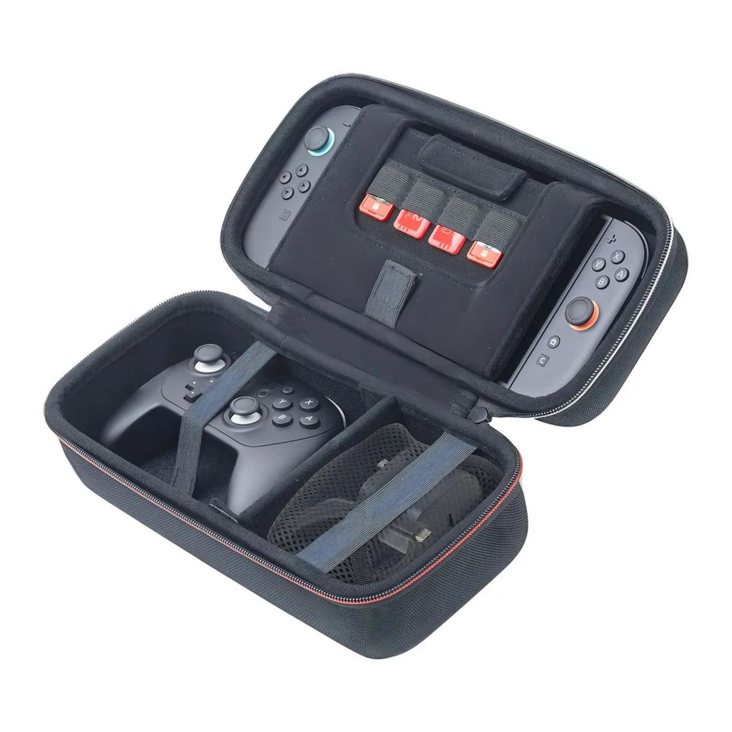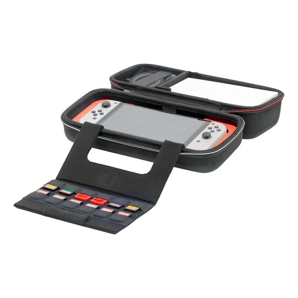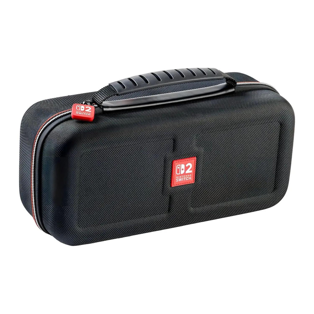 Mantén tu Nintendo Switch 2, Switch OLED y Switch original protegidas con este estuche rígido de alta calidad. Su diseño incluye una bandeja inferior con correa elástica para sujetar de manera segura el Dock, el Pro Controller o el Joy-Con Grip, mientras que el divisor acolchado con correa elástica organiza y protege el adaptador de CA y el cable HDMI. El compartimento empotrado garantiza que la consola se mantenga segura y libre de daños durante el transporte.