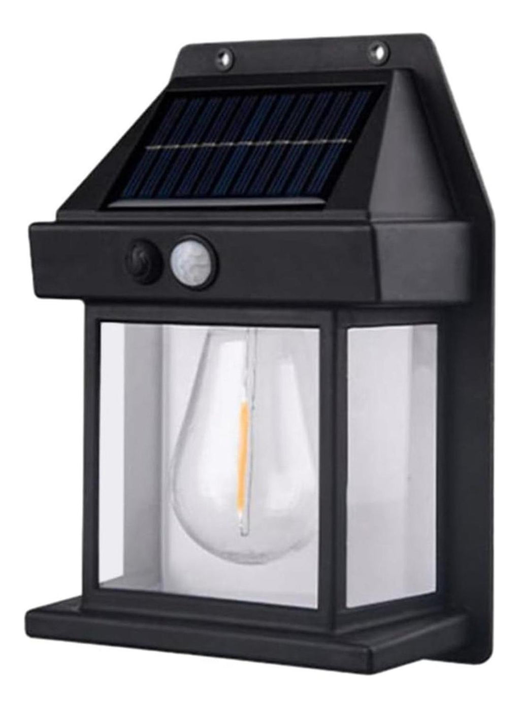 Farol solar de pared con sensor de movimiento, ideal para iluminar entradas, patios, balcones y pasillos con luz cálida y eficiente. Su diseño en color negro combina funcionalidad y estilo, ofreciendo seguridad y comodidad sin necesidad de preocuparte por apagar la luz.