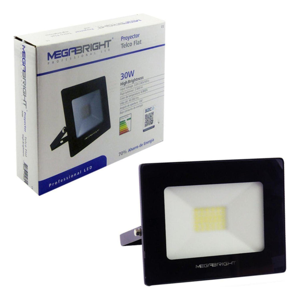 Foco LED halógeno de 30W de potencia, ideal para iluminación de áreas libres, fachadas, jardines y multicanchas. Proporciona luz fría de 6.000K y una vida útil de hasta 40.000 horas. Producto con certificación SEC, que se adapta con éxito al entorno, ofreciendo seguridad y eficiencia energética.