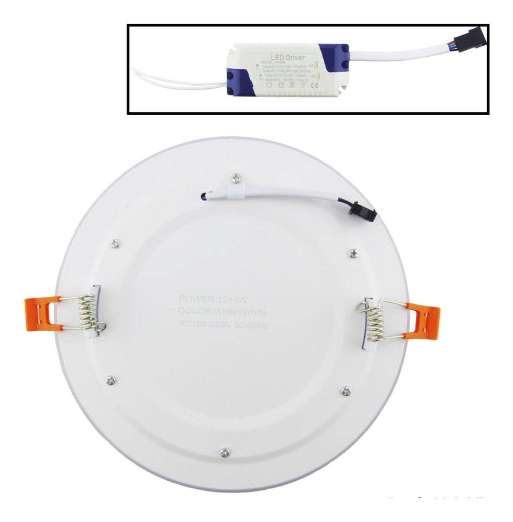 Foco LED panel dúo, diseñado específicamente para cielo falso. Compuesto por dos paneles de 12 Watt y 4 Watt, este sistema ofrece una luz fría, intensa y eficiente, ideal para ambientes que requieren claridad y frescura. Su diseño redondo y estilizado se integra perfectamente en cualquier decoración moderna. Medidas: 19.2 x 3.2 cm. Tipo de luz: Fría. Peso: 370 G. Color: Blanco. Material: Metal y plástico. Producto 100% recomendado. Garantía Legal de 6 meses.