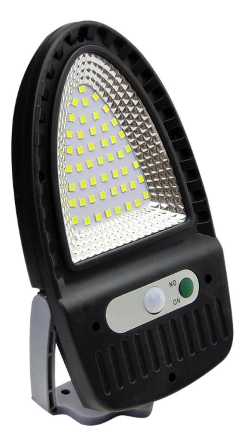Foco mini solar para pared de 50 LED de luz blanca.Cuenta con sensor de movimiento, articulacion y 3 modos de funcionar, luz fija, encendido por sensor de movimiento y luz tenue, el foco enciende automaticamente al oscurecer. Incluye tornillos y tarugos para su instalacion. Medidas:10 x 18,8 x 4,1 cm. Tipo de luz: Fría. Peso: 230GR. Color: Negro. Material: Metal y plástico. Producto 100% recomendado. Garantía Legal de 6 meses.