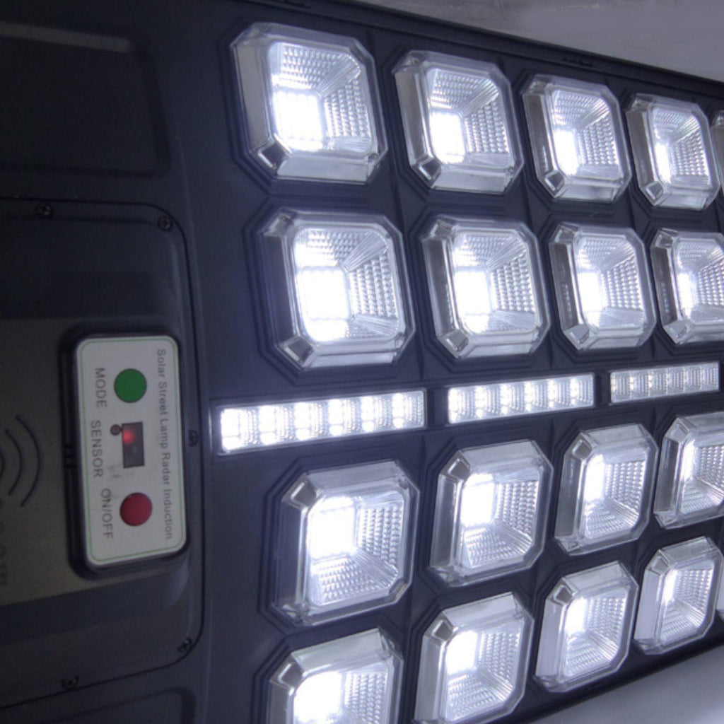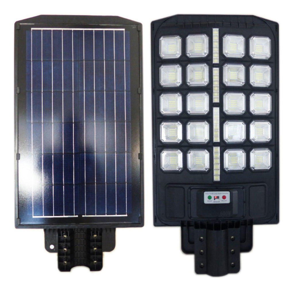 Foco solar con 576 LED y potencia de 600 watts, equipado con 24 placas LED y control remoto para una fácil operación. Ofrece una gran intensidad de luz, ideal para iluminar patios, antejardines, calles y cualquier espacio exterior que necesites iluminar.