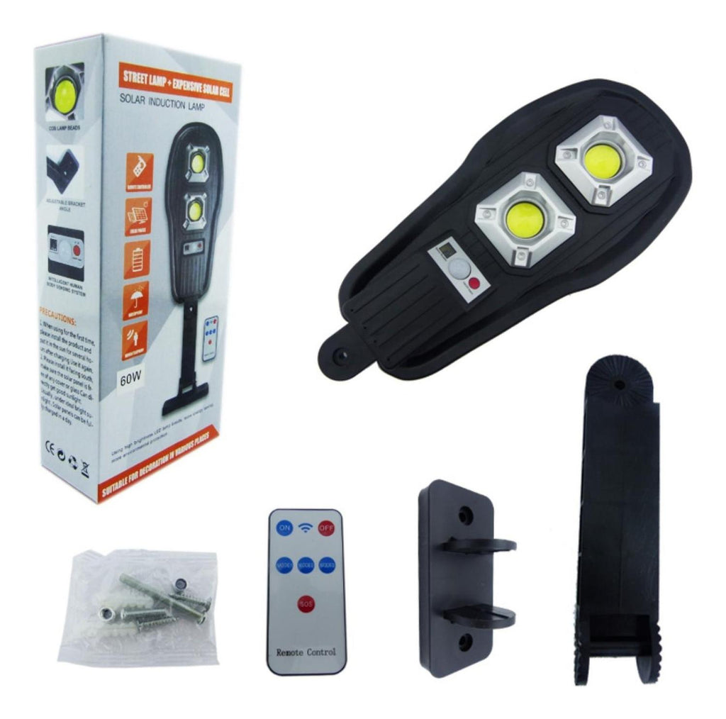 Foco mini solar para pared con COB de 60 watt, con sensor de movimiento y brazo para pared. Resistente al intemperie Ideal para tener iluminación con energía solar. Medidas: 50 x 6 x 16 cm. Tipo de luz: Fría. Color: Negro. Potencia: 60WATT. Material: PVC. Producto 100% recomendado. Garantia Legal de 6 meses.