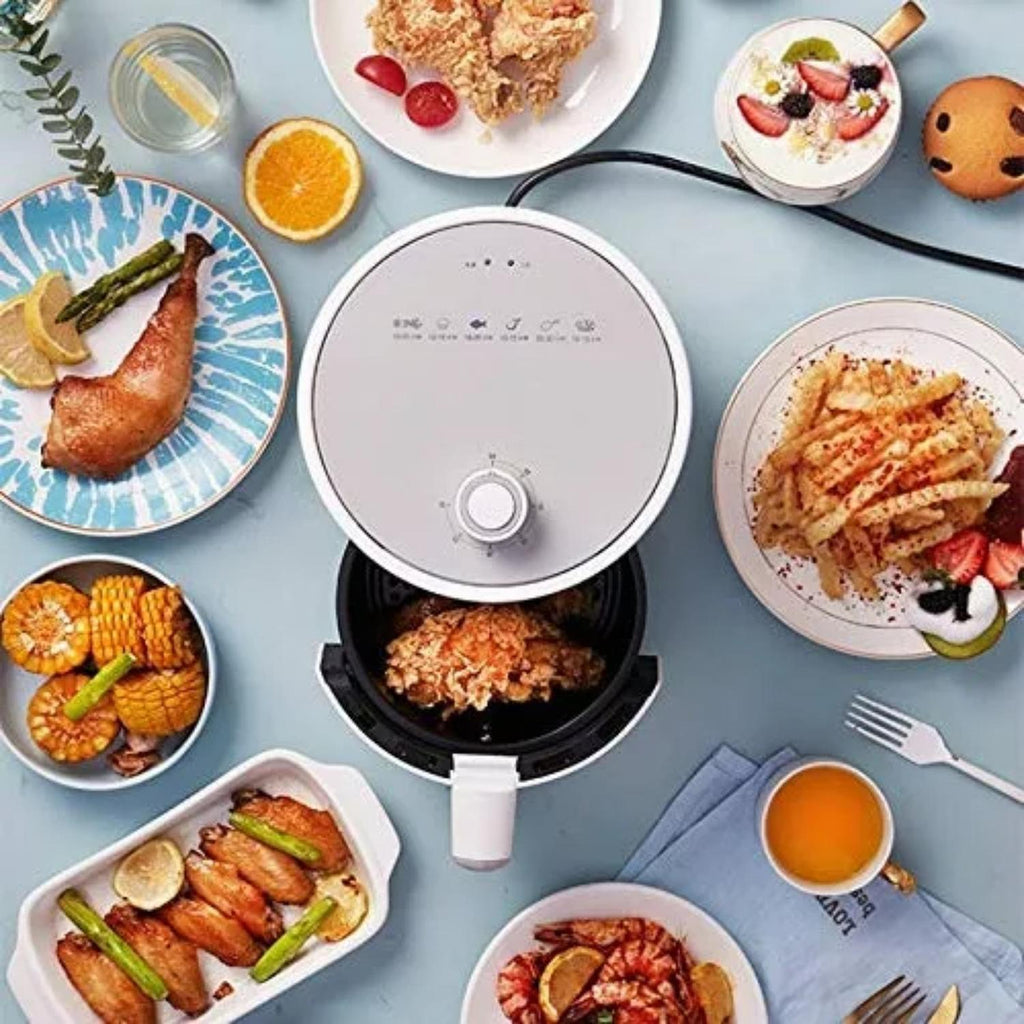 Fácil de usar y limpiar, solo coloca los alimentos en la cesta antiadherente, ajusta la temperatura y el temporizador, ¡y listo! Su diseño compacto en blanco combina funcionalidad con estilo, haciendo que cocinar sea práctico y seguro para tu cocina.