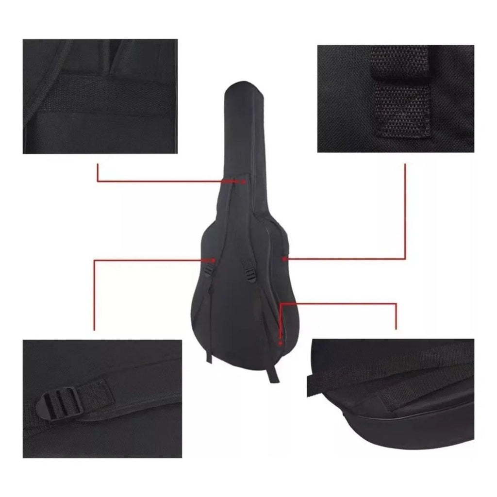 Esta funda impermeable está diseñada para proteger guitarras acústicas de 40 pulgadas contra polvo, humedad y golpes. Fabricada en resistente tela Oxford, combina durabilidad y ligereza, manteniendo tu instrumento seguro durante transporte o almacenamiento.