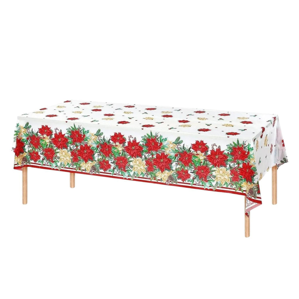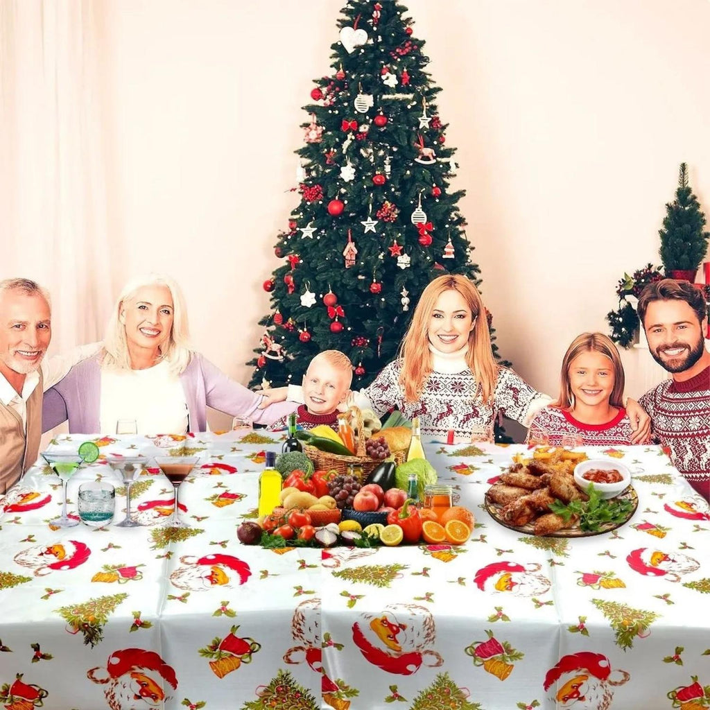 El mantel mide 176 cm x 143 cm, ofreciendo el tamaño perfecto para proteger y decorar tu mesa mientras mantiene el estilo navideño. Las fundas de sillas complementan la decoración, añadiendo un toque uniforme y elegante que hará que tu mesa sea el centro de todas las miradas.