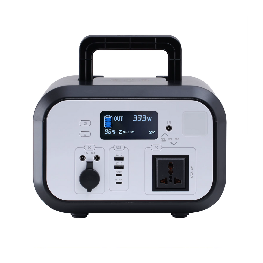 Con una potencia de salida de 600W y una batería de 461Wh, puedes alimentar desde teléfonos y notebooks hasta pequeños electrodomésticos. Su diseño compacto y liviano, junto a múltiples salidas —como puertos AC, USB, Tipo C y conector de auto—, garantizan una amplia conectividad para todo tipo de necesidades.