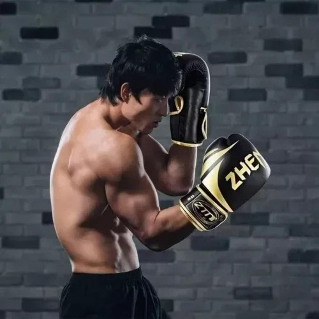 Guantes Boxeo Profesional Alta Calidad Velcro Dorado Oscuro 12 Onzas