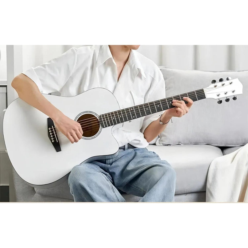 Esta guitarra acústica de 38 pulgadas está diseñada para principiantes y músicos en desarrollo, ofreciendo comodidad, facilidad de afinación y un sonido equilibrado. Su mástil en forma de C permite un agarre natural y un toque cómodo, mientras que el diapasón de trastes suaves facilita la ejecución de acordes y solos rápidos.