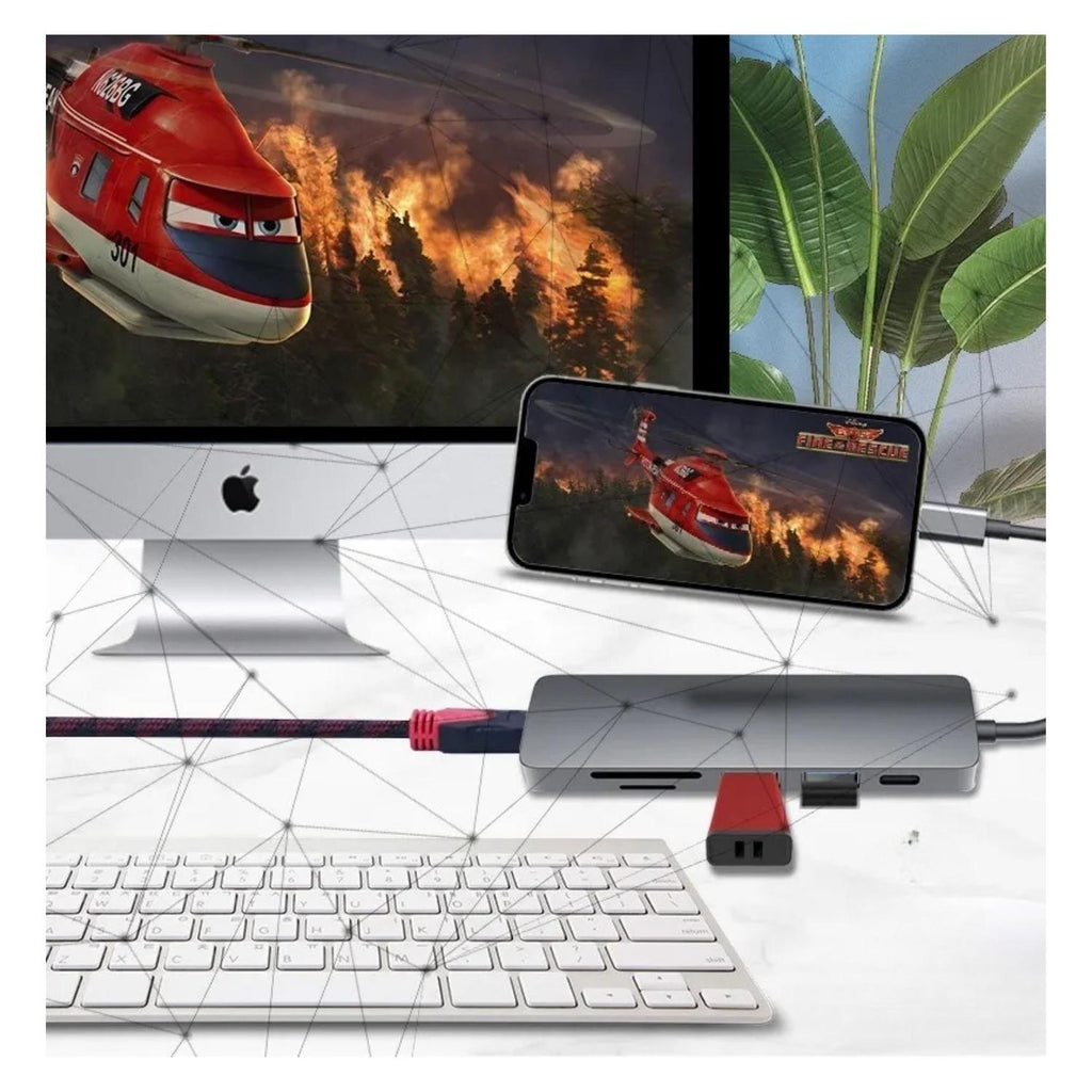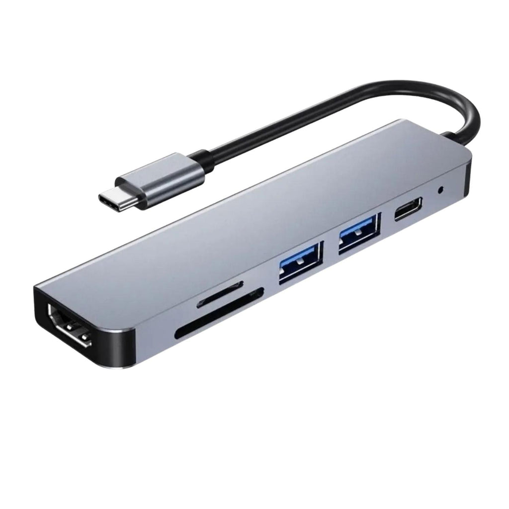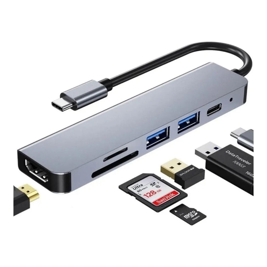 ¡Conecta todo lo que necesitas con un solo dispositivo! Este adaptador HUB USB-C 6 en 1 es ideal para quienes buscan practicidad y eficiencia en sus actividades diarias. Su diseño compacto y ligero lo hace perfecto para transportar y utilizar en la oficina, reuniones, viajes o desde la comodidad de tu casa. Incluye puertos HDMI, 2x USB 3.0, lector de tarjetas TF y SD, y una entrada USB-C para máxima compatibilidad.
