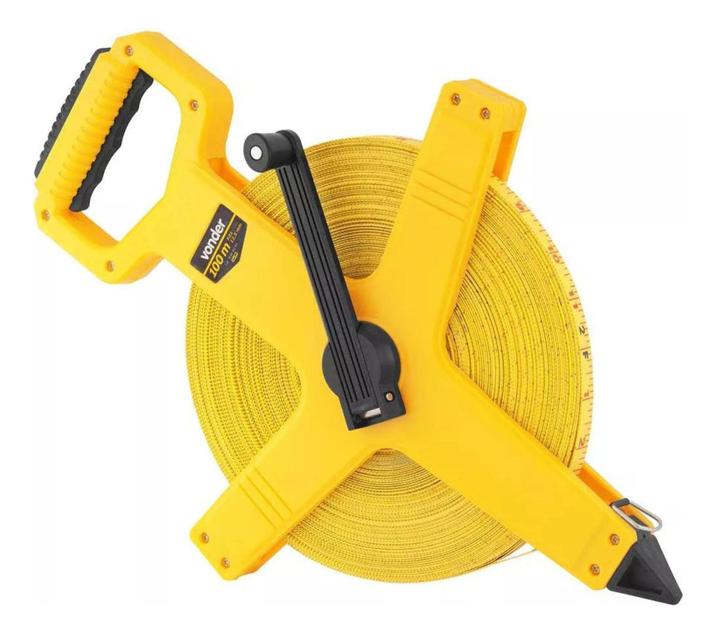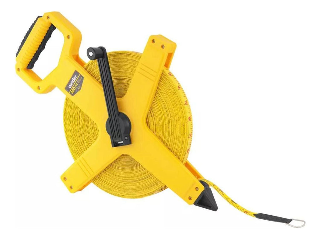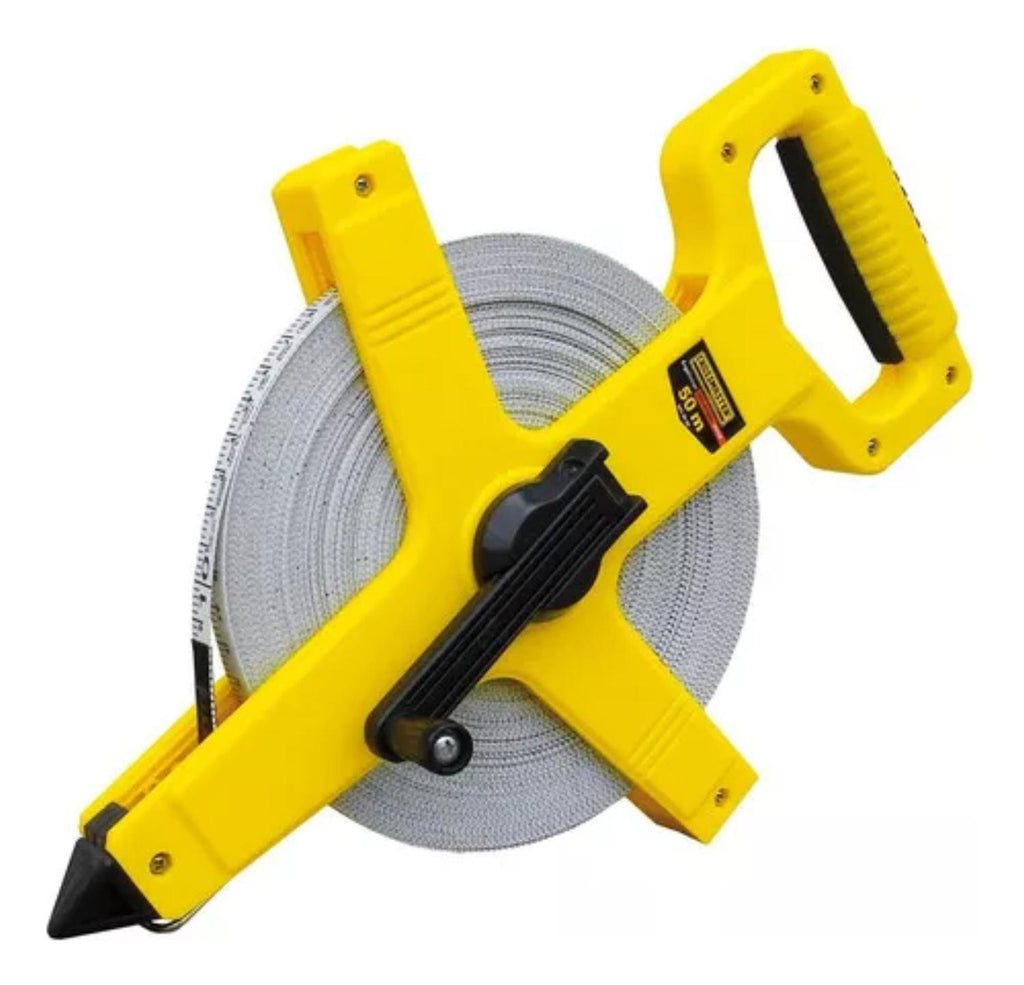 Herramienta fabricada con fibra de vidrio de PVC para garantizar una resistencia y flexibilidad ante cualquier trabajo.Hecha a medida para trabajos de construcción, peritajes, técnicos, talleres de herrería, talleres de carpintería y otras actividades que requieren tomar medidas largas.Cuenta con manilla y dos rodillos guía de retorno los cuales evitan que la cinta se tuerza o atasque.Sistema de medición en centímetros y pulgadas.Punta con bode de acero resistente para ser fijada y evitar que la hoja se deslice durante el uso. Huincha / Cinta Métrica De 50 Mts Con Manilla Profesional. Medidas: 20x30x2 cm aprox. Peso:0.3 aprox. Color: Amarillo. Medidas empaque: 20x30x2 cm aprox. Material: fibra de vidrio y plástico.