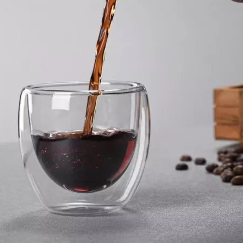 Este juego de 4 tazas de café, con un diseño elegante y minimalista, es perfecto para los amantes del café. Cada taza tiene una capacidad de 80 ml, ideal para disfrutar de un espresso o cualquier otra bebida caliente. Están hechas de vidrio templado, un material resistente y duradero que garantiza una larga vida útil. Además, su color blanco aporta un toque de sofisticación a cualquier mesa o encimera.Lo más destacado de estas tazas es su diseño de doble pared, que no solo mantiene la temperatura de las bebidas calientes, sino que también protege tus manos del calor. Así, puedes disfrutar de tu café caliente sin preocuparte por quemarte. Medidas paquete: 13x13x13 cm. Medidas:6x6 cm. Capacidad en volumen: 80 mL Peso: 0.1 kg. Color: Transparente. Material: Vidrio. Producto 100% recomendado.|Garantía Legal de 6 meses.