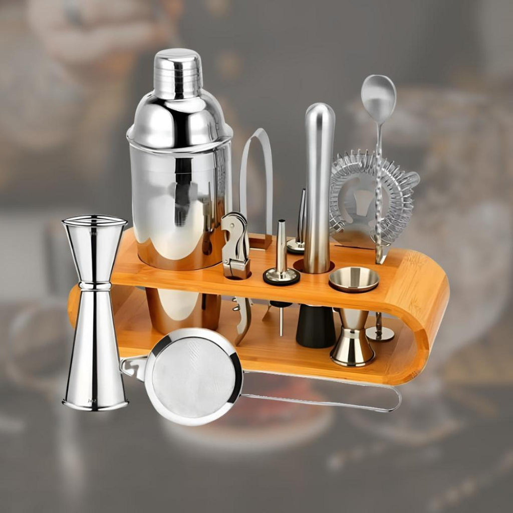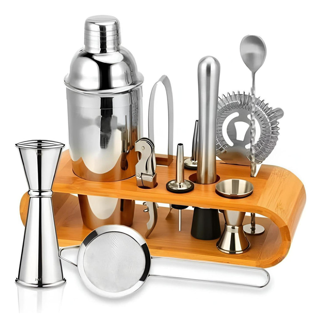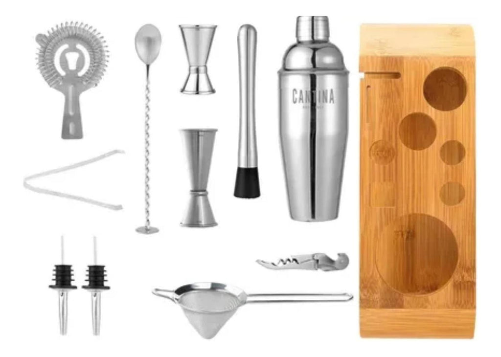 El juego de bartender es completo y de muy buena calidad, ideal para preparar todo tipo de tragos. Los materiales son resistentes y mantienen bien la temperatura. Es una excelente opción para regalo, con una presentación y terminaciones que satisfacen. Conviértete en el alma de la fiesta preparando tus cócteles favoritos con el Juego de Utensilios de Bar Cantina de 12 piezas. Este completo kit incluye todas las herramientas esenciales para mezclar bebidas como whisky, escocés, vodka, tequila, ginebra, ron, sake y una amplia variedad de cócteles. Ideal tanto para quienes se inician en el mundo de la coctelería como para bartenders con experiencia.Su diseño compacto y elegante es perfecto para exhibir en tu hogar, y todas las piezas están fabricadas en acero de alta calidad y durabilidad. Coctelera de doble pared de 750 ml. Medidor de 15/30 ml. Medidor de 30/60 ml. Pinzas para hielo. Cuchara mezcladora. Mortero. Colador. Sacacorchos. 2 vertedores. Colador de malla fina. Soporte de bambú. Medidas empaque: 30x20x10 cm aprox. Peso:1 kg. Color: Negro y plateado. Material: Acero Inoxidable. Producto 100% recomendado. Garantía Legal de 6 meses.