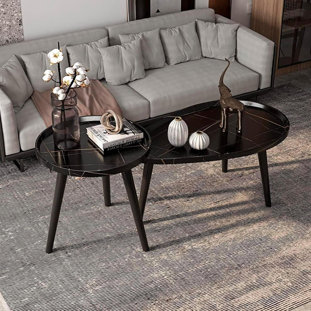 Juego Mesa Centro Doble Ovalada 80-50 CM Negro