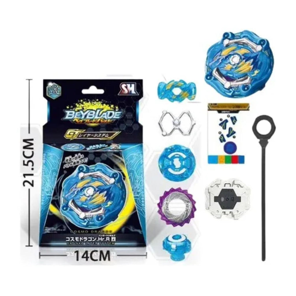 Prepárate para intensas batallas con el Beyblade GT Cosmo Dragon, un modelo que destaca por su innovador sistema de bloqueo infinito, lo que lo hace mucho más difícil de estallar durante los enfrentamientos. Su diseño combina potencia, resistencia y velocidad, garantizando combates emocionantes para todos los fanáticos de Beyblade.