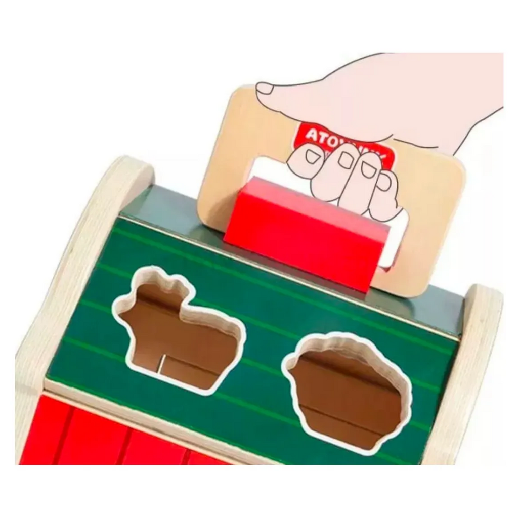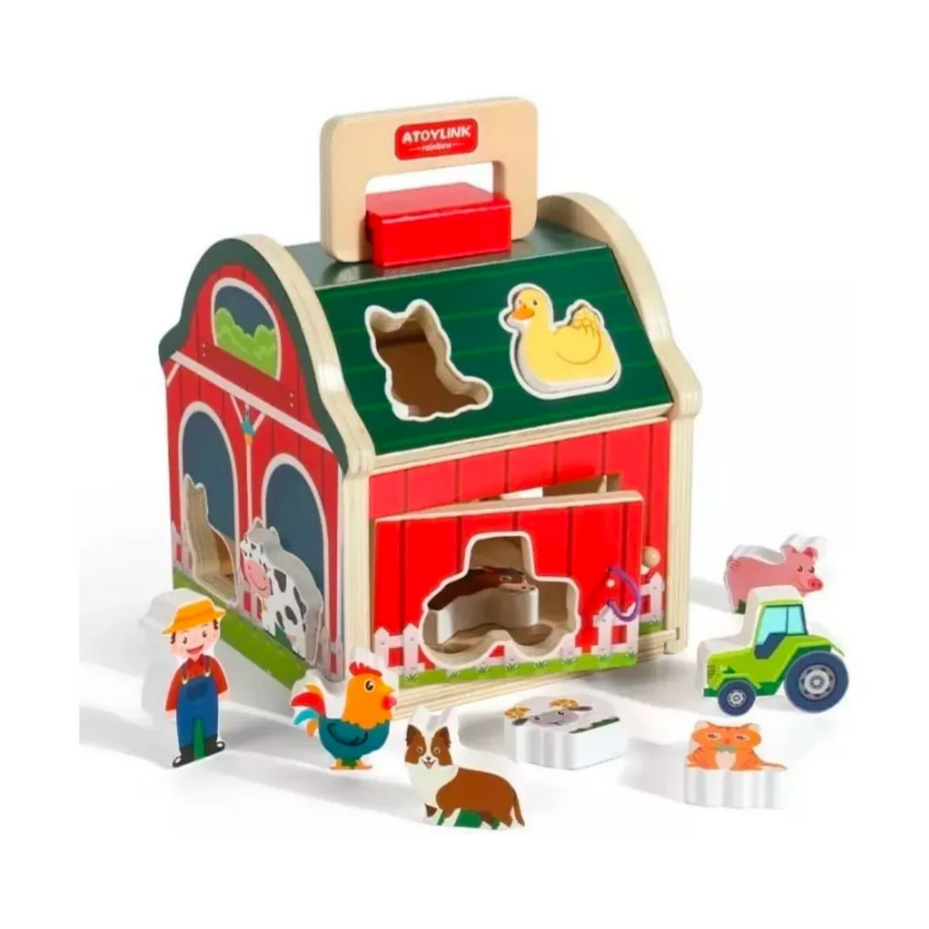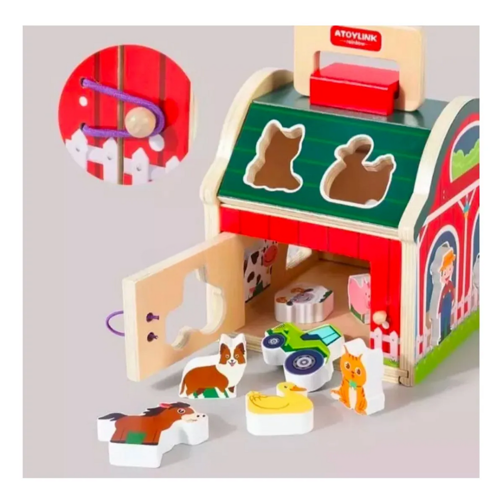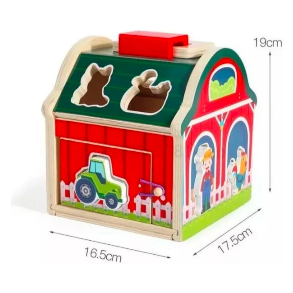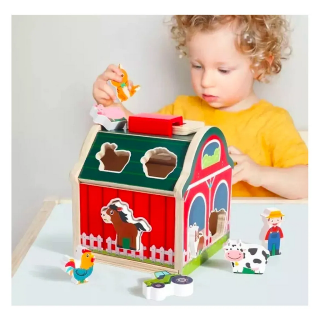 Estimula el aprendizaje y la imaginación de los más pequeños con esta divertida granja de encaje en madera. Su diseño didáctico incluye animales de granja y figuras de agricultores que los niños podrán encajar en las formas correspondientes del granero, desarrollando su reconocimiento visual y motricidad fina. Con su práctica asa de madera, es ideal para transportar y jugar en cualquier lugar.