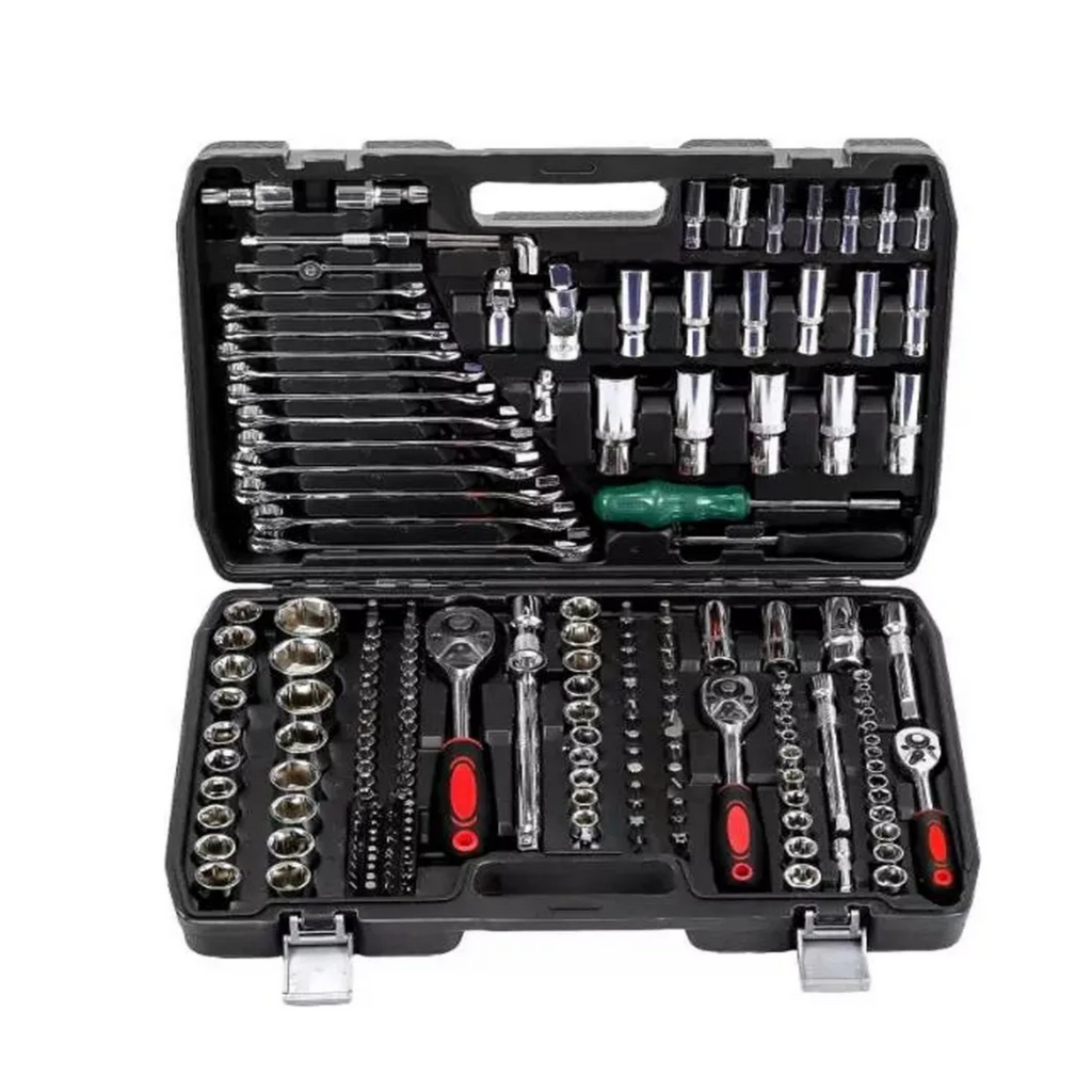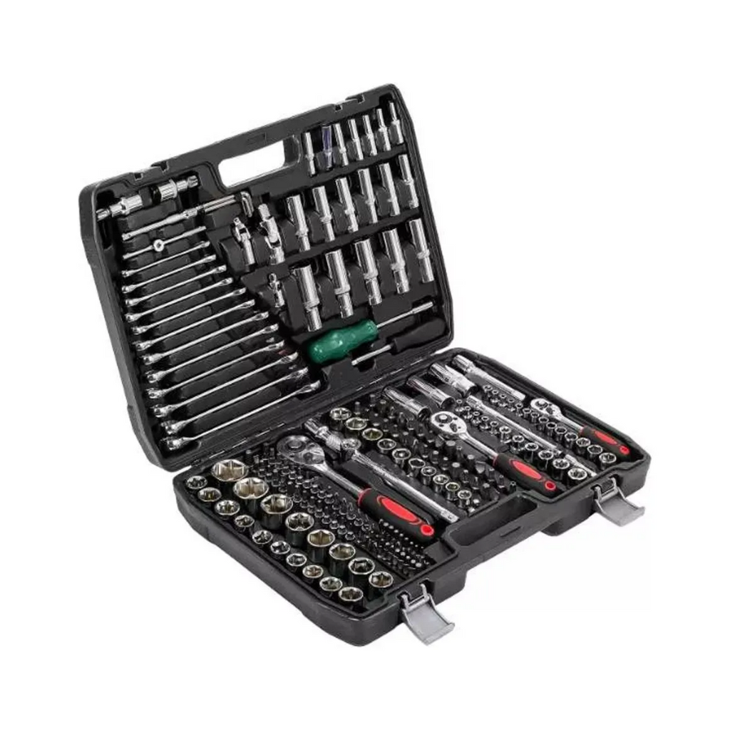 Este Kit de Herramientas de 216 piezas es la solución ideal para quienes necesitan un juego completo y versátil de dados y accesorios. Incluye trinquetes reversibles, barras de extensión, adaptadores, vasos estándar y profundos, así como puntas de diferentes tamaños para trabajos mecánicos precisos. Con sus tres tipos de accionamiento (1/2", 3/8" y 1/4"), permite realizar reparaciones y ajustes en una gran variedad de aplicaciones domésticas y profesionales.