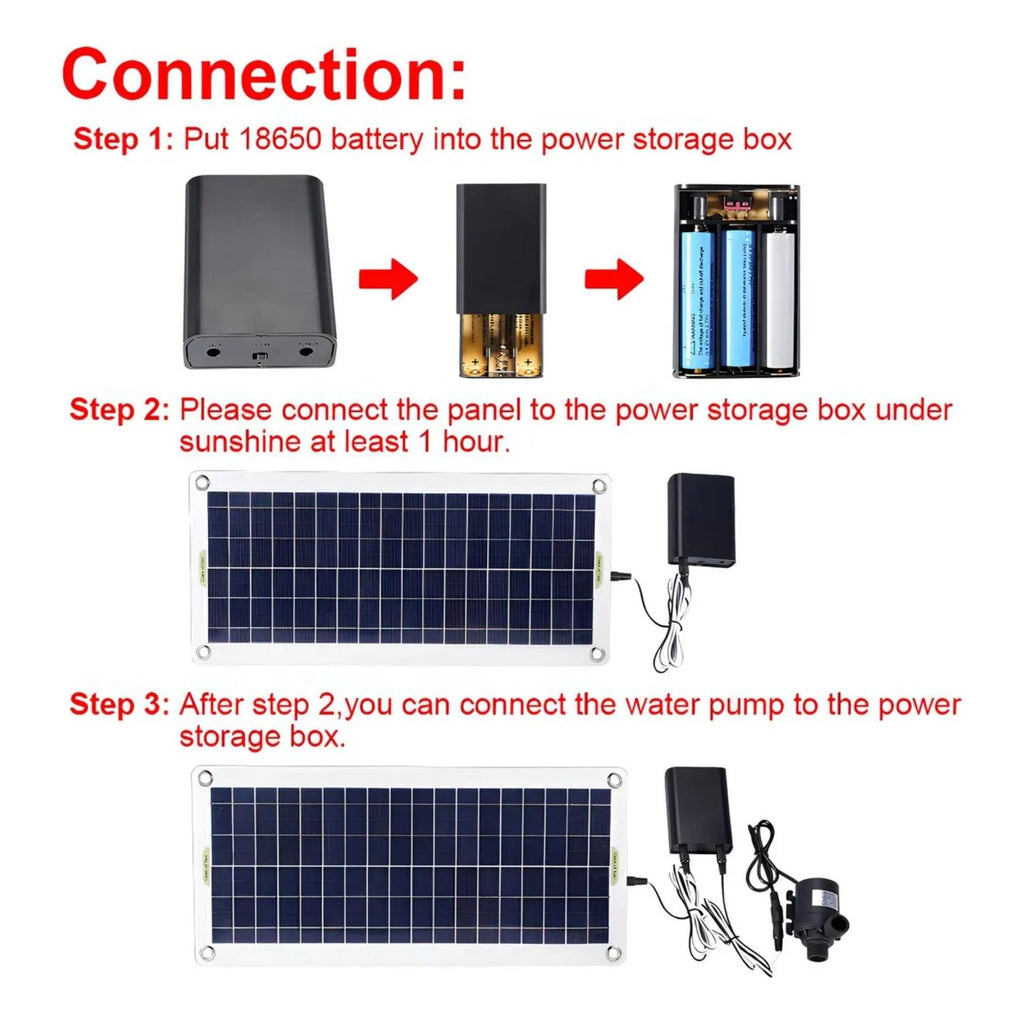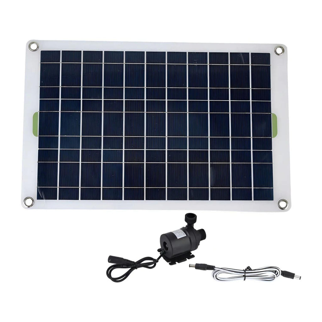 Kit de bomba de agua solar de 50 W con panel incluido, diseñado para mover hasta 800 litros por hora de manera eficiente y silenciosa. Ideal para jardines, peceras, baños de aves y pequeños estanques, esta bomba aprovecha la energía solar para funcionar de manera ecológica y económica, sin necesidad de conexión eléctrica. Su construcción en silicona y plástico de alta calidad garantiza durabilidad y resistencia a la intemperie.