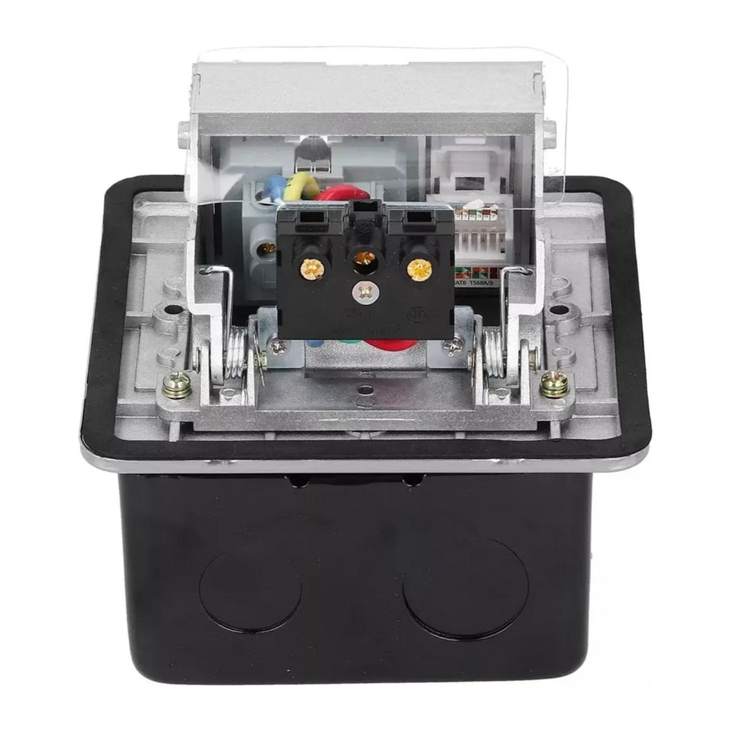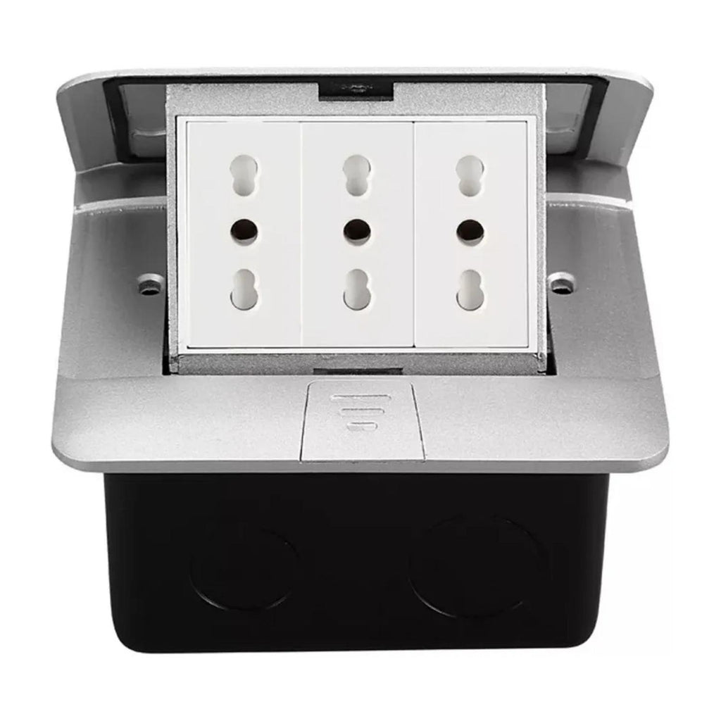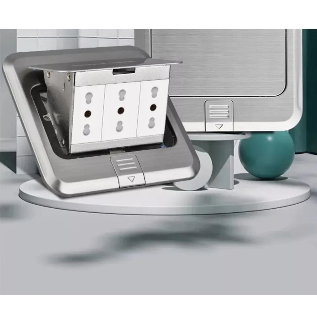 Kit de caja de piso Pop Up metálica con 3 tomas de 16A, diseñado para ofrecer comodidad, seguridad y estilo en cualquier instalación. Su diseño resistente al agua y al polvo (IP55) permite usarlo en interiores y exteriores, protegiendo los enchufes de la humedad y el polvo. Ideal para oficinas, cocinas, salas de conferencias o espacios donde se requiere acceso seguro a la electricidad desde el suelo.