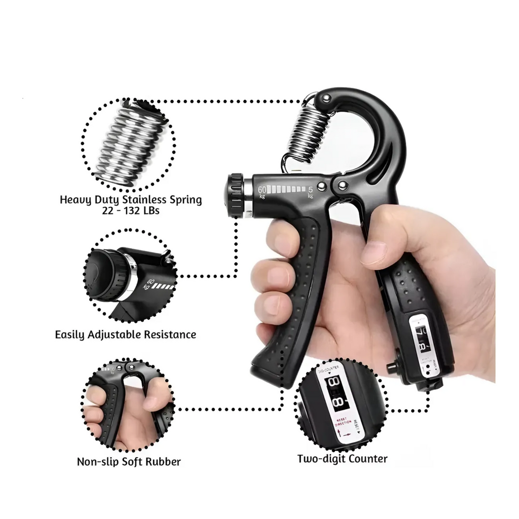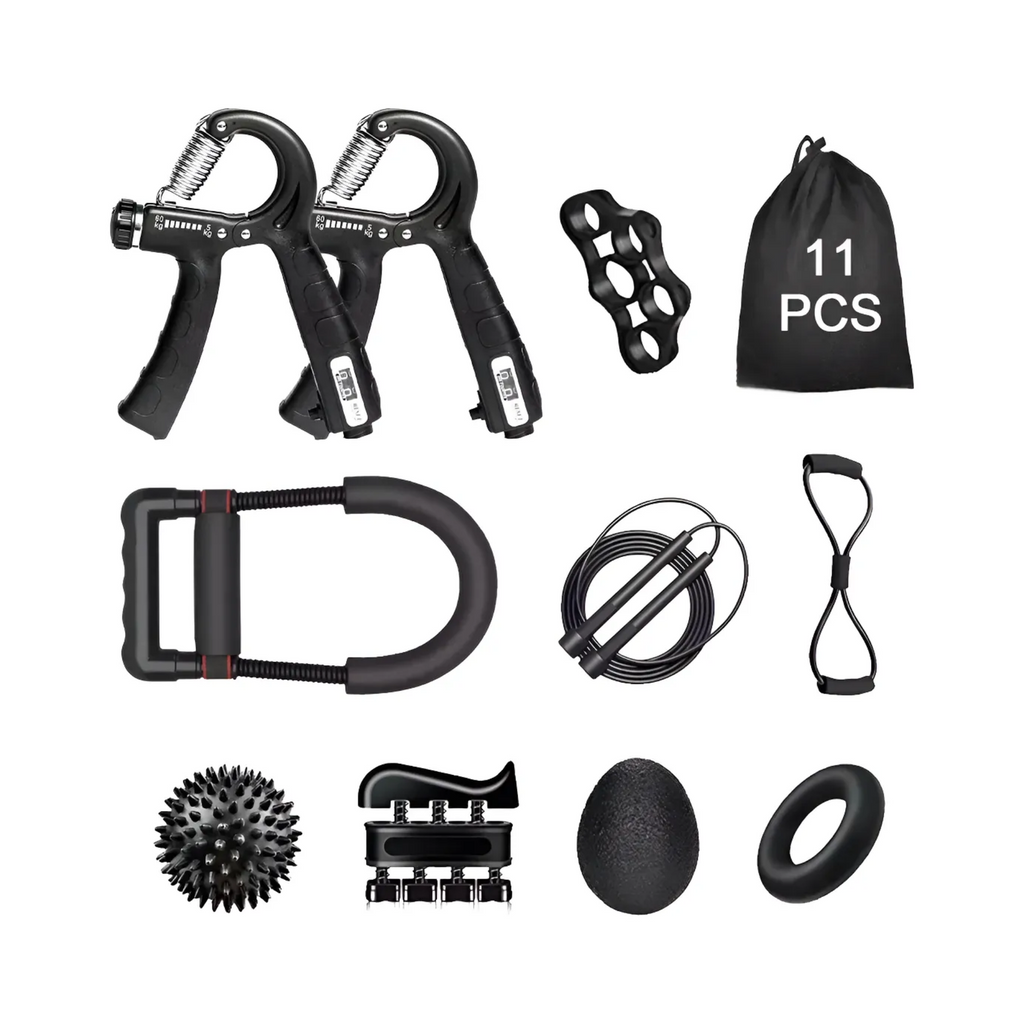 Este kit completo de 11 piezas está diseñado para fortalecer tus manos, dedos, muñecas y antebrazos de manera efectiva y versátil. Incluye empuñaduras ajustables con un rango de resistencia de 10 a 60 kg y contador mecánico para llevar el control de tus ejercicios, bandas de resistencia, bolas de masaje, cuerda para saltar y una práctica bolsa de almacenamiento. Perfecto para atletas, músicos y cualquier persona que quiera mejorar su fuerza o rehabilitar lesiones como artritis o túnel carpiano.