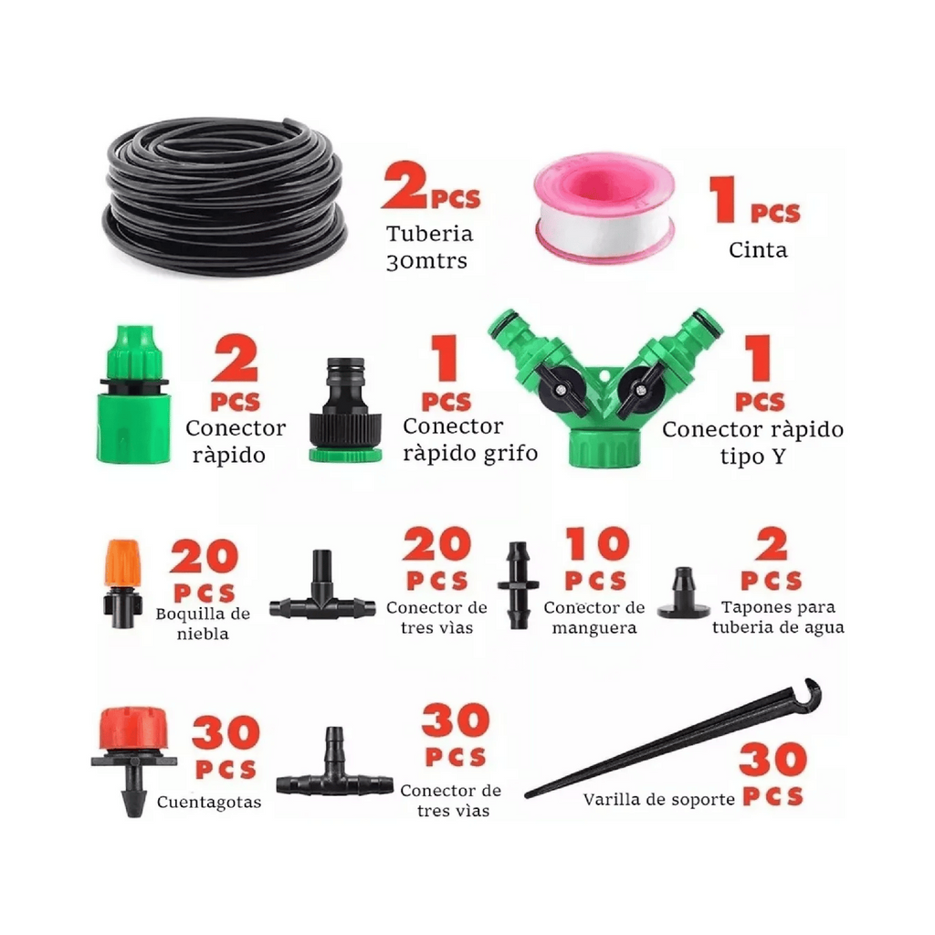 Kit multifunción: los goteros y las boquillas también son ajustables, controlan el flujo de agua girando, las boquillas también proporcionan un ambiente fresco del calor para áreas al aire libre. Ideal para agricultura, césped, jardín, patio, invernadero, piscina, neblina, riego de refrigeración por niebla.