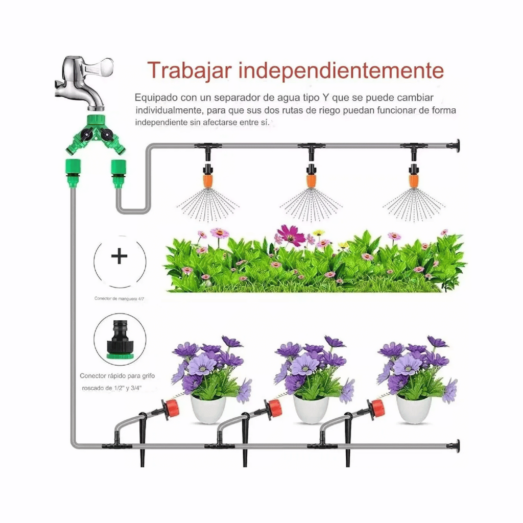 Fácil instalación: kits de riego por goteo de instalación sencilla sin habilidades de excavación o plomería, simplemente corta la manguera, conecta los accesorios de púas con boquillas o goteros, un manual de usuario para mostrar cómo instalar claramente, simplemente hazlo tú mismo.