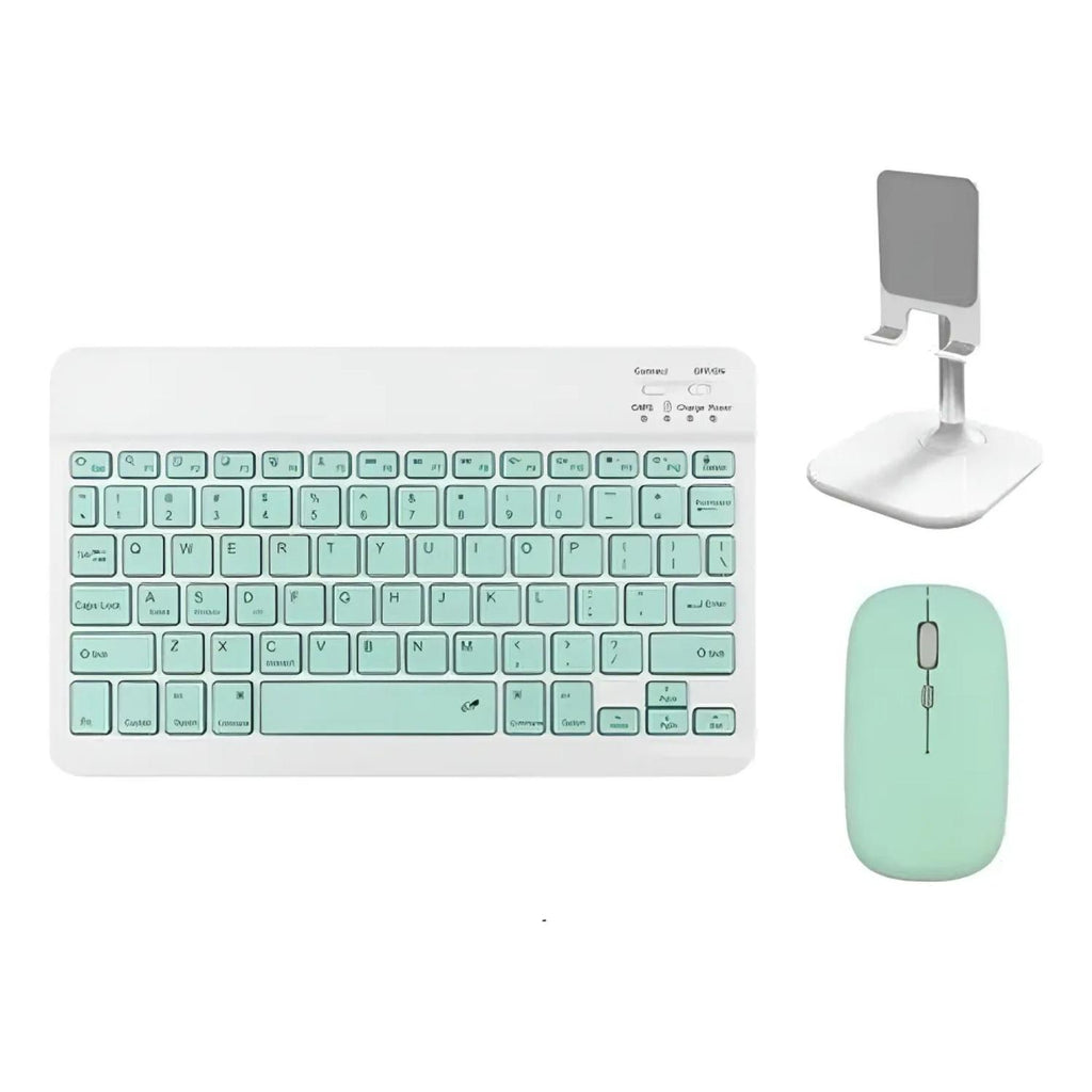 Optimiza tu productividad y comodidad con este kit que incluye teclado Bluetooth, mouse inalámbrico y soporte para dispositivos. El teclado de 9,7 pulgadas es ultrafino y ligero, compatible con smartphones y tabletas Android, Windows e iOS, ofreciendo una experiencia de escritura cómoda gracias a sus teclas tipo tijera. La conexión Bluetooth permite trabajar sin cables hasta 10 metros de distancia, mientras que su batería recargable ofrece hasta 40 horas de uso continuo y un modo de espera de ahorro de energía de hasta 2 meses.