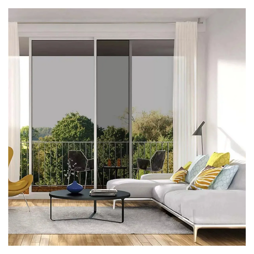 También actúa como aislante térmico, ayudando a mantener el interior más fresco en verano y cálido en invierno, lo que se traduce en ahorro de energía. Su compatibilidad con superficies lisas la hace ideal para ventanas, puertas corredizas, oficinas, cocinas y baños. Es una solución práctica, decorativa y funcional para el hogar u oficina, con un elegante acabado negro plateado que brinda un toque moderno.