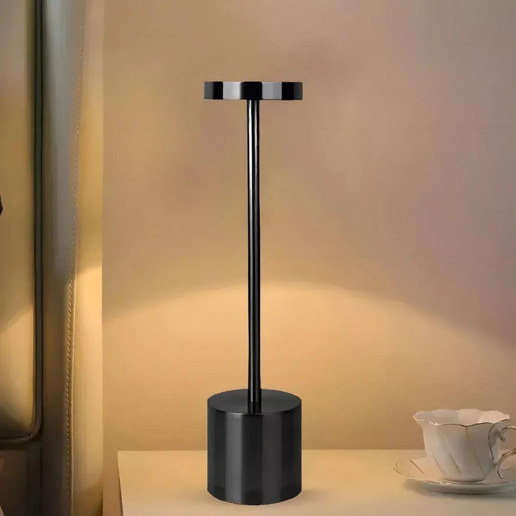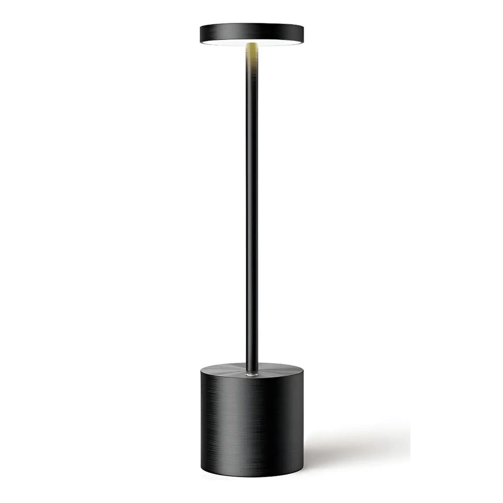 Ilumina tus espacios con estilo con esta lámpara LED inalámbrica de diseño moderno, ideal para interiores y exteriores. Su estructura metálica pulida y forma elegante aportan un toque decorativo único. Ofrece tres tonos de luz ajustables por toque (cálido, blanco cálido y neutro), perfecta para crear ambientes acogedores o relajantes. Además, su batería recargable brinda practicidad y portabilidad total.