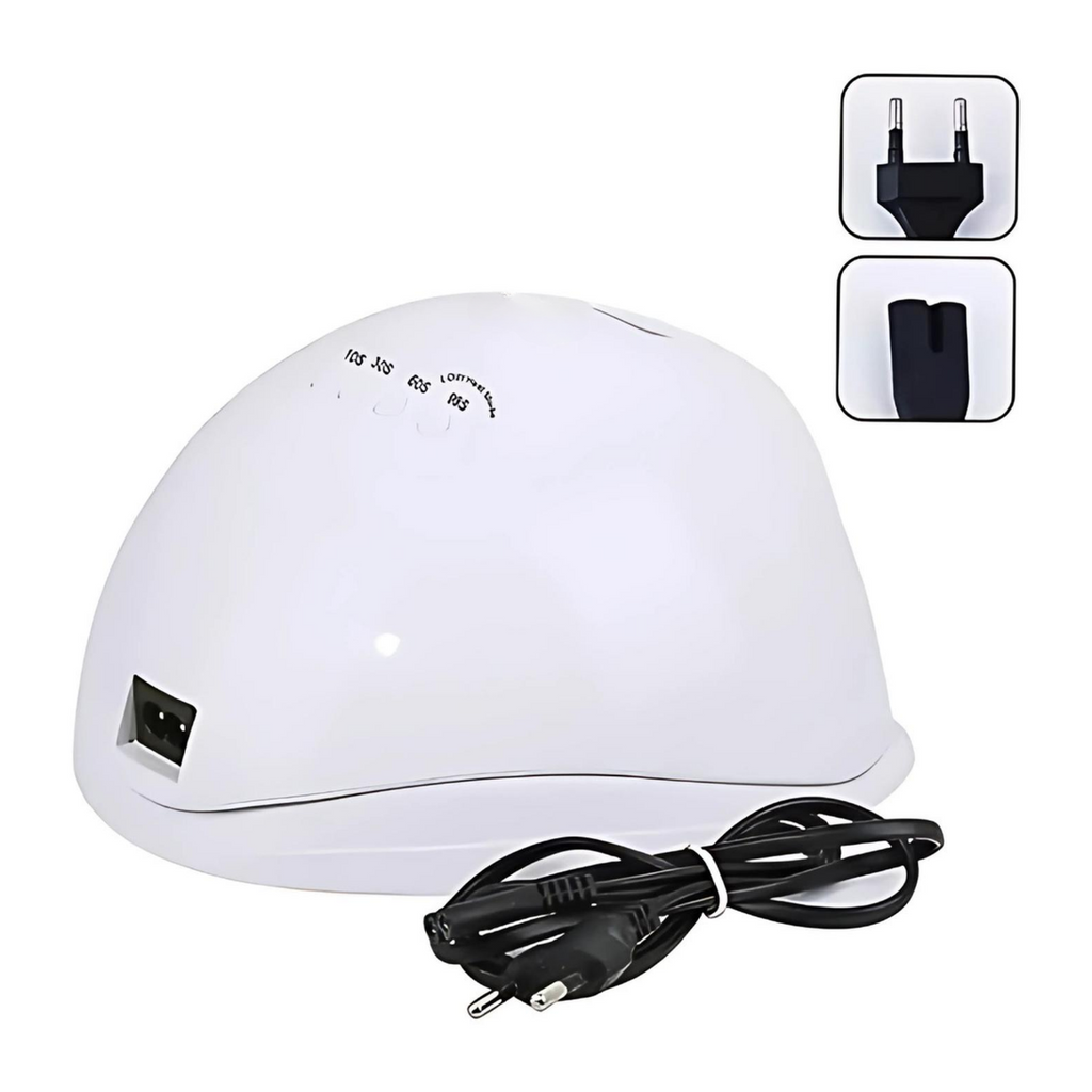 Máquina de manicura de alta calidad, diseñada para secar uñas con esmalte de gel de manera rápida y eficiente. Cuenta con lámpara LED de 48 W y 24 leds, ofreciendo un secado uniforme y seguro tanto para uso profesional como en el hogar. Su diseño práctico permite carga mediante adaptador, laptop o powerbank, facilitando su uso en cualquier lugar.
