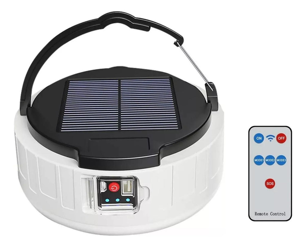 Excelente iluminación, adopta un chip LED 5730 de alta intensidad, eficiencia energética/con amplia gama de visibilidad, ilumina fácilmente un espacio de 600 pies cuadrados. 3 niveles de brillo y dos formas de cargar para tus diferentes necesidades de iluminación. Con control remoto inalámbrico, conveniente para ajustar el brillo de la iluminación en cualquier momento.Dos métodos de carga Batería recargable integrada de iones de litio de 1200 mAh, la linterna LED mejorada con dos métodos de carga: carga solar y carga USB. También se puede utilizar como un banco de energía para ti en emergencia, carga tus dispositivos de energía solar, eficiencia energética y ecológica.Duradero y resistente al agua: hecho de material ABS de alta calidad, garantiza una larga durabilidad y resistencia al agua, resistente al calor, resistente a la congelación, garantiza una larga durabilidad, sin problemas en entornos difíciles. Perfecto para actividades en interiores o exteriores.Ligero y portátil, el diseño compacto hace que la luz de camping ahorre espacio, fácil de llevar. Con mango multiusos, se puede colgar en tiendas de campaña o árbol, libera tus manos. El diseño extremadamente ligero también se adapta a niños pequeños, un gran regalo para tus seres queridos.Multiusos, un equipo de supervivencia necesario para actividades al aire libre, gran kit para camping, senderismo, pesca, caza o caminata nocturna. Una luz de emergencia perfecta para fallos de energía en el hogar en los huracanes, tormentas. No importa dónde vivas, todo el mundo necesita esta luz confiable. Material: Plástico. Capacidad de la batería: 1200 mAh. 55 metros cuadrado de rango de luz. 3 modos de luz, de 8 a 48 hrs de duración (segun modo de luz). Color: Blanco. Tamaño: 16x6.8 cm. Tamaño paquete: 17x10 cm. Peso: 420g. Producto 100% recomendado. Garantía Legal de 6 meses.
