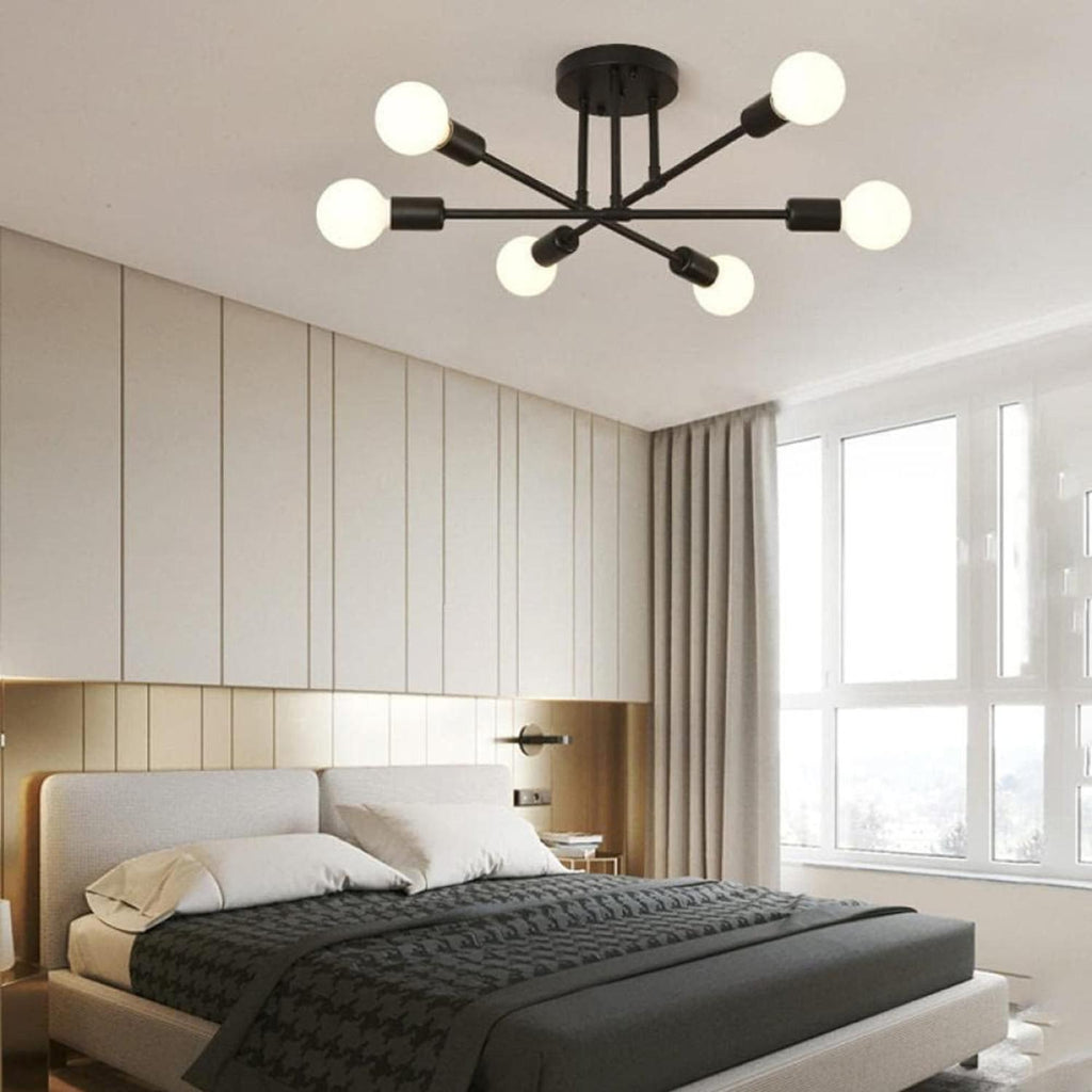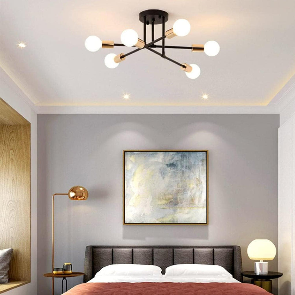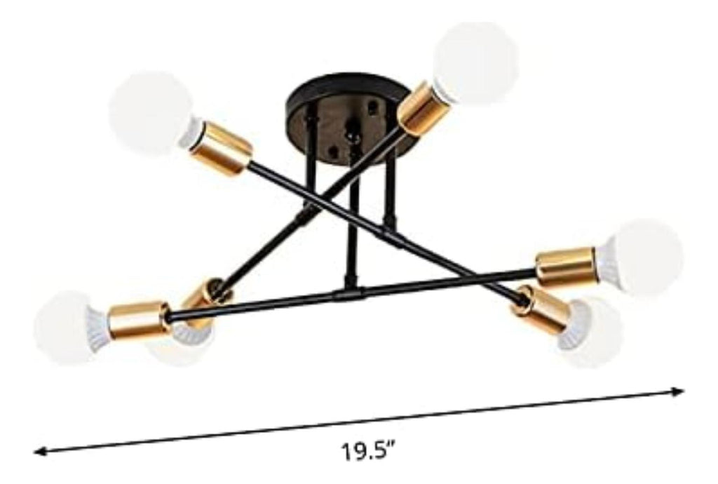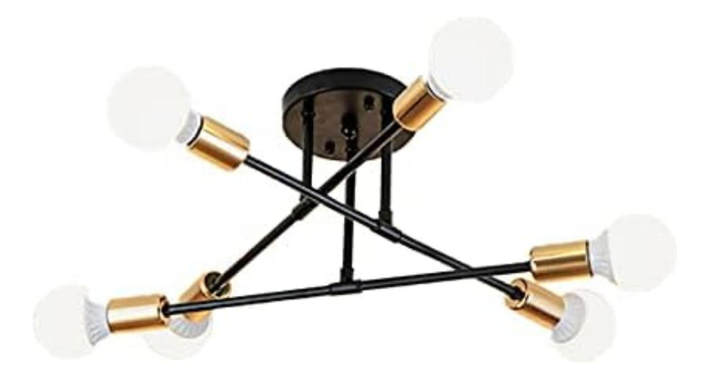 Las lámparas de araña de estilo moderno son perfectas para su nuevo hogar. Cada vez son más los diseñadores de interiores que eligen estas luces para que sus clientes consigan un alto nivel de envejecimiento del hogar y encuentren un nuevo estilo para sus casas. Puede elegirla como luz lisa para su comedor, salón o dormitorio y puede combinar con diferentes estilos decorativos, moderno, clásico, vintage, bazar, etc.Esta lámpara es adecuada para todo tipo de bombillas E27, por ejemplo, CFL, halógenas, de cambio de color, sin condensación, de estilo antiguo, LED. 60W máx. por bombilla (sin bombilla).La lámpara viene precableada y es fácil de instalar en el techo. Se incluye toda la tornillería y las instrucciones necesarias para una instalación rápida y sencilla. 6 ramas ya están cableadas. Para instalar la luminaria, basta con enroscar las ramas en la bola central y asegurarlas.Requiere 6 bombillas normales E27, LED o incandescentes.Los 3 vástagos de la lámpara de techo para dormitorios se fijan individualmente al techo de la luminaria y las bombillas pueden girar 180 grados en horizontal, para que pueda encontrar su forma favorita. Pueden girar libremente para ajustarse a diferentes formas según sus necesidades.Moderna lámpara fabricada en metal resistente con una avanzada tecnología de chapado para un aspecto moderno y minimalista. El color es más uniforme y menos propenso a descascarillarse, por lo que es más duradero. El sencillo diseño de mediados de siglo confiere a la araña dorada un aspecto elegante.Con su diseño flexible y giratorio, la araña emite un brillo acogedor, creando una sensación de confort y ofreciendo un estilo moderno y llamativo a la vez que complementa la decoración de su hogar.Donde el lujo moderno se une a las texturas vintage, esta araña adornará maravillosamente su hogar. Perfecto para zonas interiores en general, como comedores, salones, cocinas, pasillos, cafeterías, sótanos, bares, clubes, restaurantes, bibliotecas, dormitorios y salas de lectura. Puede elegir la posición de instalación según sus necesidades reales.Es elegante y tiene un aire industrial vintage. Se puede utilizar en estilos de decoración domésticos y comerciales modernos y retro. Haz que tu habitación tenga estilo y sea única. Medidas: 70 x 20 cm. Tipo de luz: Cálida. Color: Dorado/Negro Información sobre el producto Potencia por bombilla: 60 vatios Potencia recomendada: 40 vatios Material: Acabado metálico de hierro galvanizado Portalámparas: E27 (bombilla no incluida) Tensión: 110V Producto 100% recomendado. Garantía Legal de 6 meses.