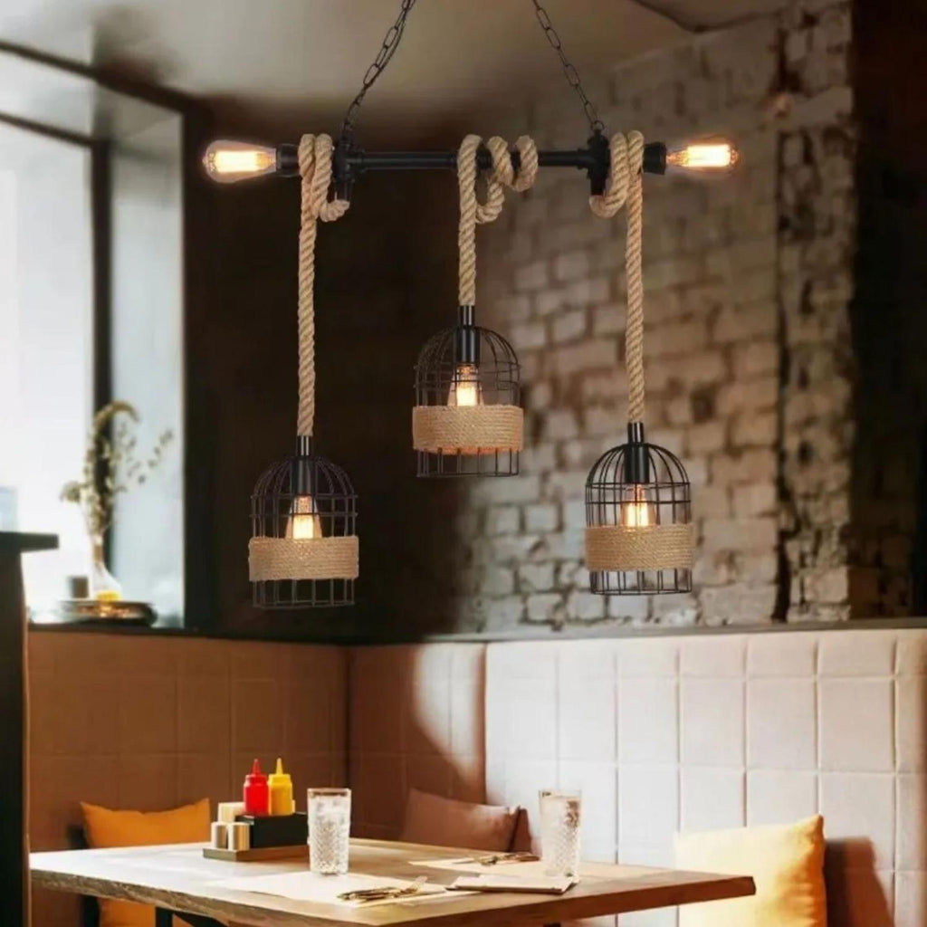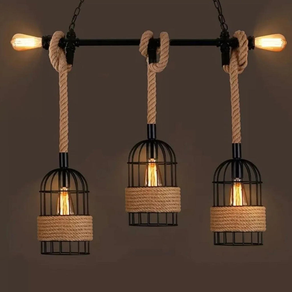 Lámpara Triple Cáñamo Rustica Sin Ampolletas