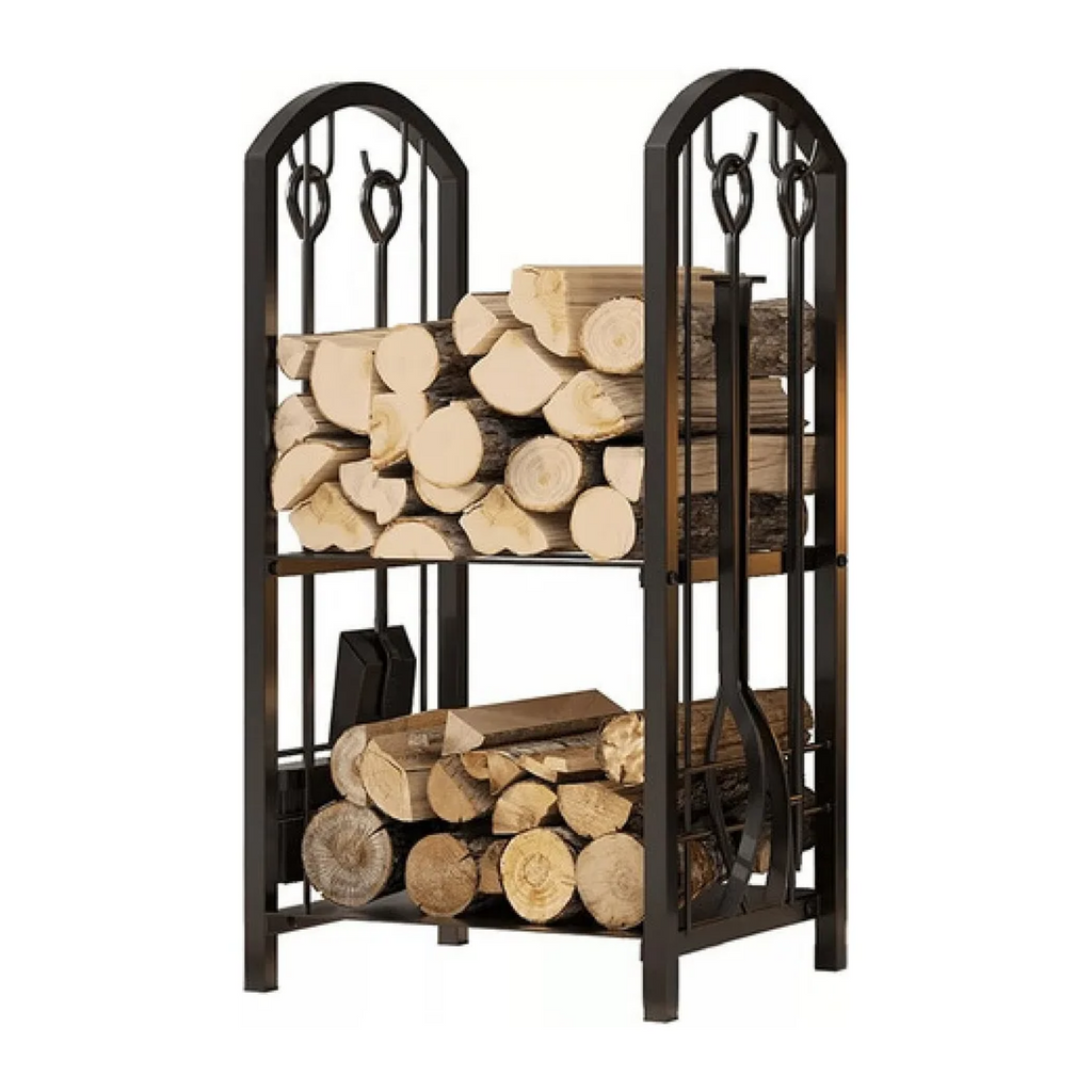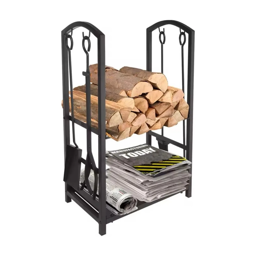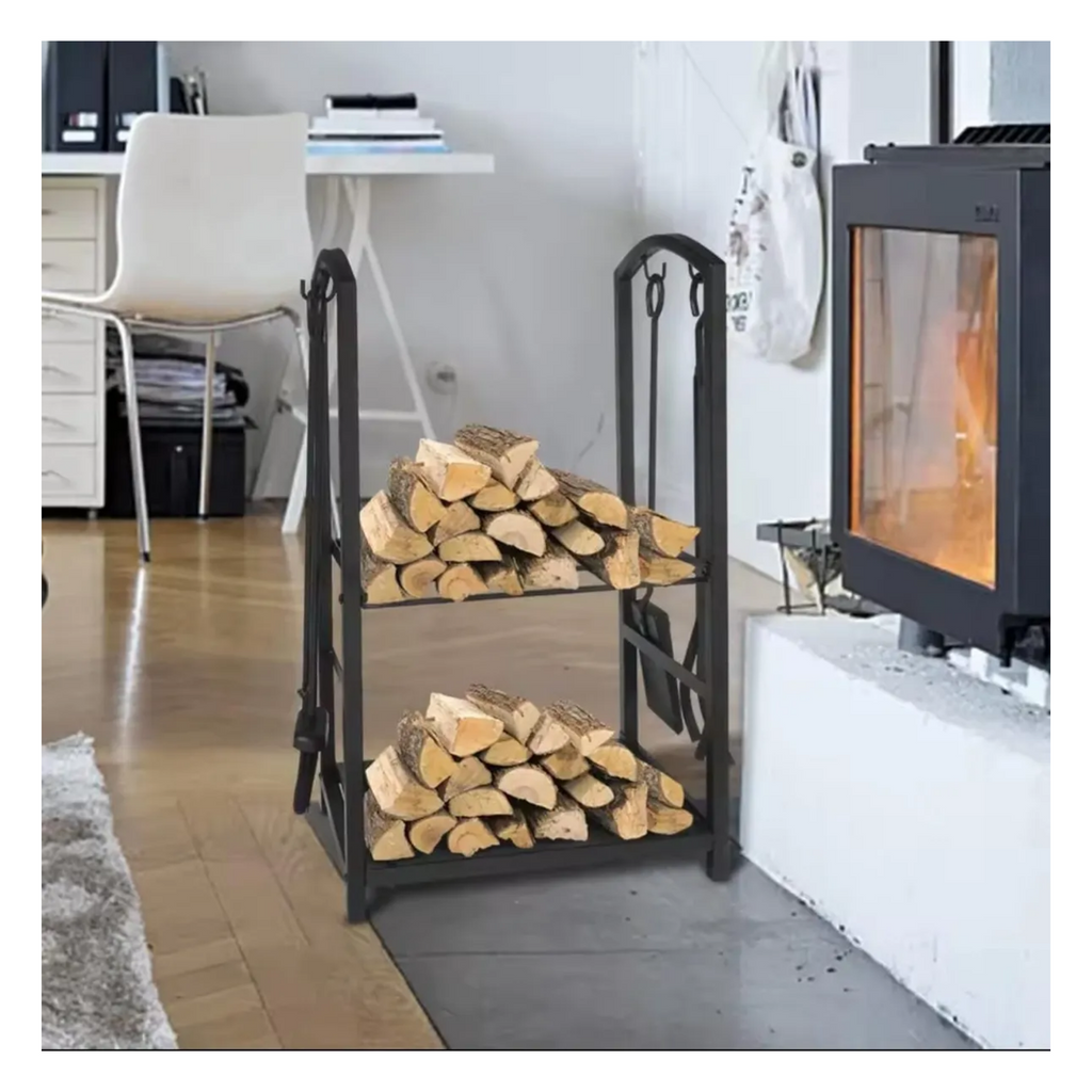 Leñero Doble con accesorios, ideal para transportar y almacenar leña de manera práctica y elegante. Su diseño metálico resistente a altas temperaturas lo hace duradero y confiable para acompañar tu espacio de calefacción. Además, aporta un toque sofisticado y distintivo que complementa cualquier estilo de decoración, ya sea moderno o rústico.