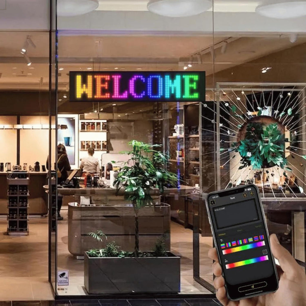 Gracias a su control vía aplicación Bluetooth, podrás programar fácilmente textos, animaciones o grafitis personalizados que reflejen el estilo y las necesidades de tu negocio. Ajusta colores RGB, brillo, velocidad y modos de visualización para crear un cartel impactante y único. Su diseño delgado y flexible permite una instalación sencilla y adaptable a cualquier espacio, fijándose firmemente con la cinta adhesiva incluida.
