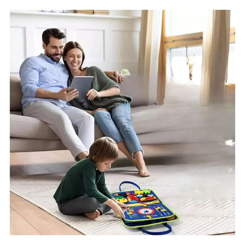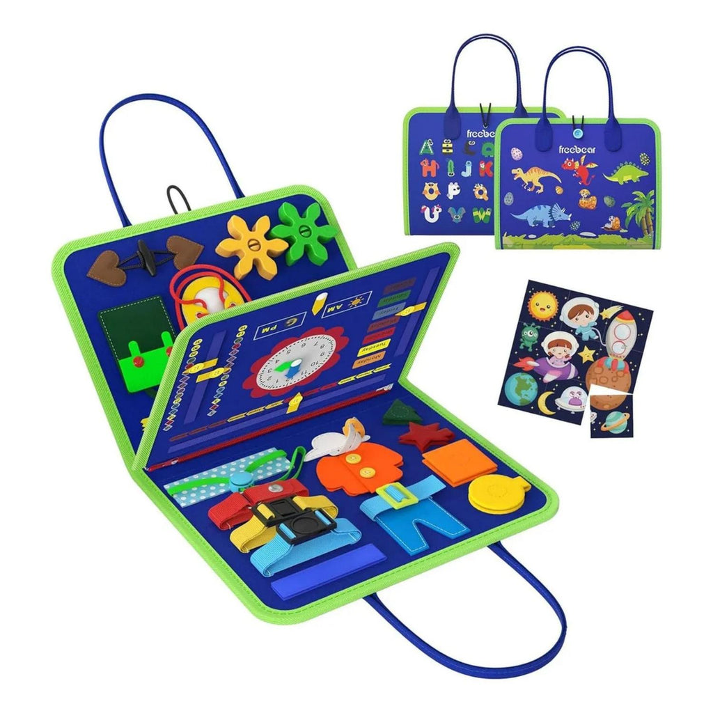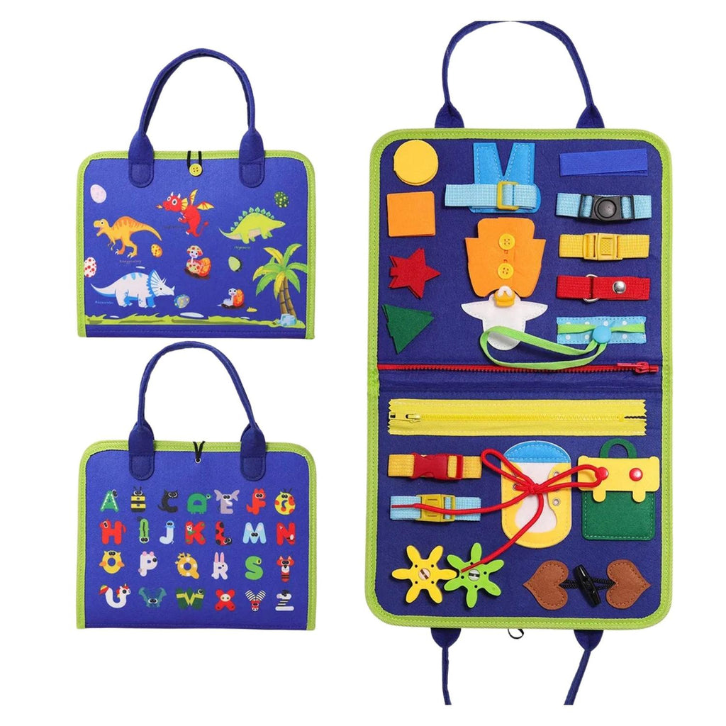 Este libro sensorial está diseñado para que los niños aprendan habilidades básicas de la vida a través del juego. Incluye cordones, cremalleras, hebillas, botones, rompecabezas, abecedario, reloj, calendario y letras de la A a la Z, todos especialmente diseñados para manos pequeñas. Fabricado en fieltro suave, seguro y sin bordes afilados, cada pieza está firmemente fijada para mayor durabilidad. Su encuadernación resistente y peso ligero lo hacen fácil de transportar, ideal como juguete de viaje y para actividades educativas.