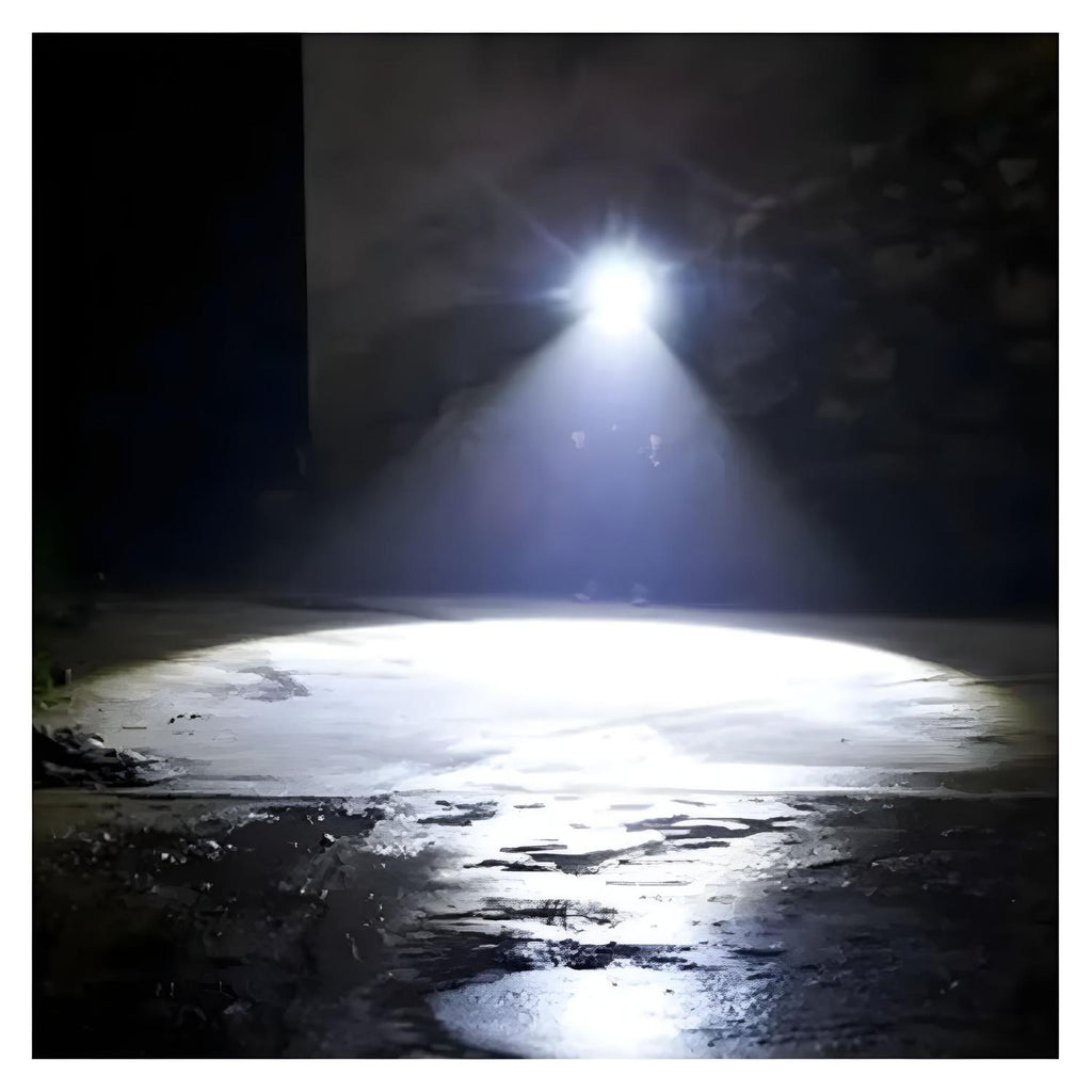 Faro LED de alta potencia y larga duración, con una vida útil de 50,000 horas, ideal para uso prolongado al aire libre, emergencias, actividades domésticas o profesionales.