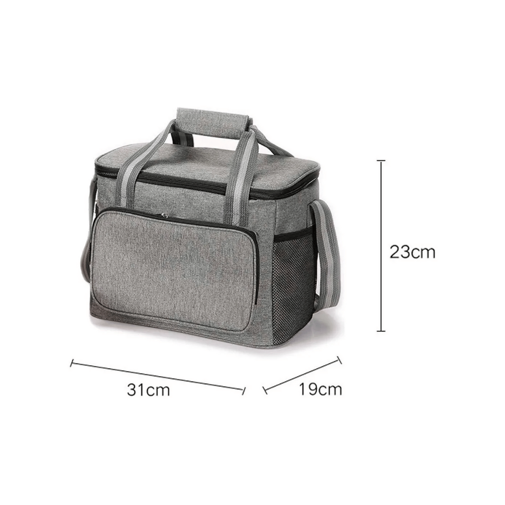 Características principales: • Medidas: 31x 19x 23 cm • Material: Poliéster con forro interior EVA aislante • Color: Gris • Medidas del empaque: 31 x 23 x 5 cm • Peso del producto: 0.46 kg aprox. • Producto 100% recomendado • Garantía: Legal de 6 meses