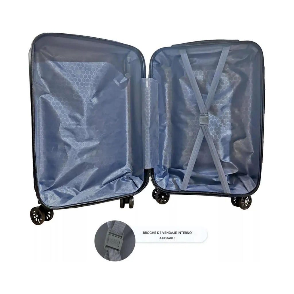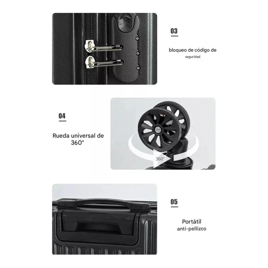 Además, incorpora una cerradura de combinación de tres dígitos para mayor seguridad de tus objetos personales, evitando robos o aperturas no autorizadas. Con unas medidas compactas de 55 cm de alto (ruedas incluidas), 34 cm de ancho (cerradura incluida) y 22 cm de fondo, esta maleta de mano te ayudará a mantener tus artículos organizados y protegidos, evitando que se deslicen o se dañen durante el viaje.