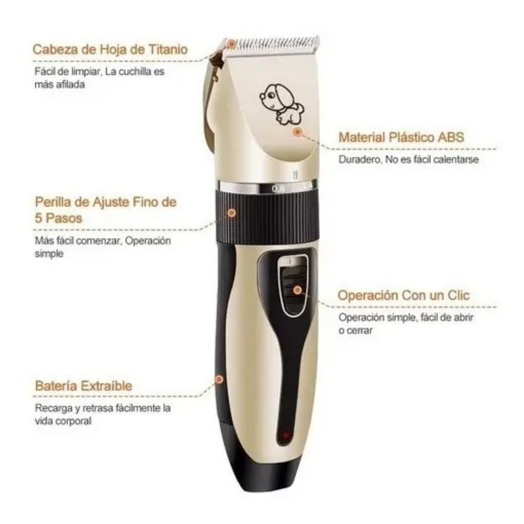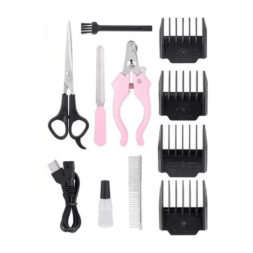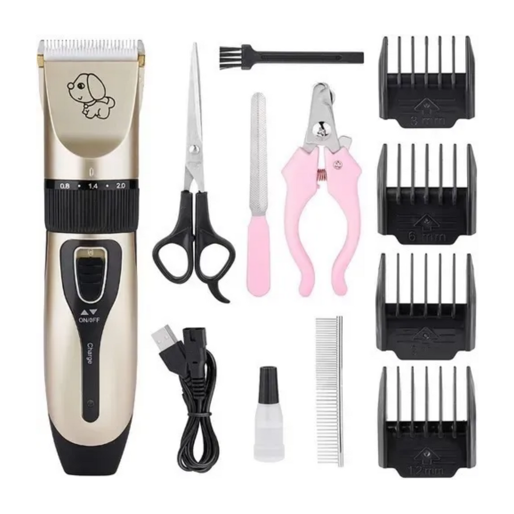 ¡Todo lo que necesitas para el cuidado de tu mascota en un solo kit! Esta práctica máquina cortapelo USB recargable es ideal para perros y gatos, con indicador de carga y múltiples accesorios que garantizan un corte preciso y seguro. Incluye 4 cabezales, peine con medidas ajustables, botella de aceite, cepillo de limpieza, lima, corta uñas y tijeras. Con un tiempo de carga de solo 2 horas, tendrás lista la herramienta perfecta para mantener a tu mascota siempre arreglada y feliz.