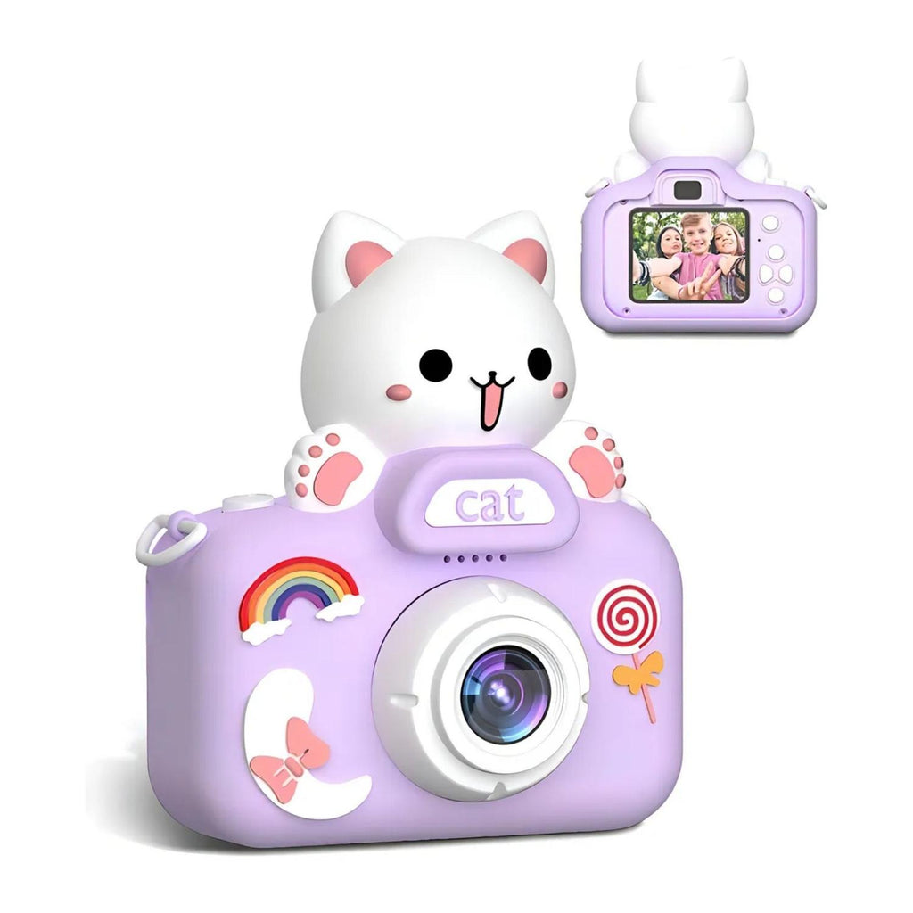 Mini cámara digital para niños con doble lente (frontal y trasera de 20MP cada una) y pantalla IPS de 2 pulgadas que protege la vista de los niños. Permite capturar fotos de alta resolución (5472×4104 PX) y vídeos en 1080P HD, además de tomar selfies, aplicar filtros multicolor, pegatinas de fotos, cambiar fondos y temporizador. Su tamaño compacto y diseño ligero hacen que sea fácil de sostener y transportar, ideal para capturar momentos divertidos en cualquier lugar.