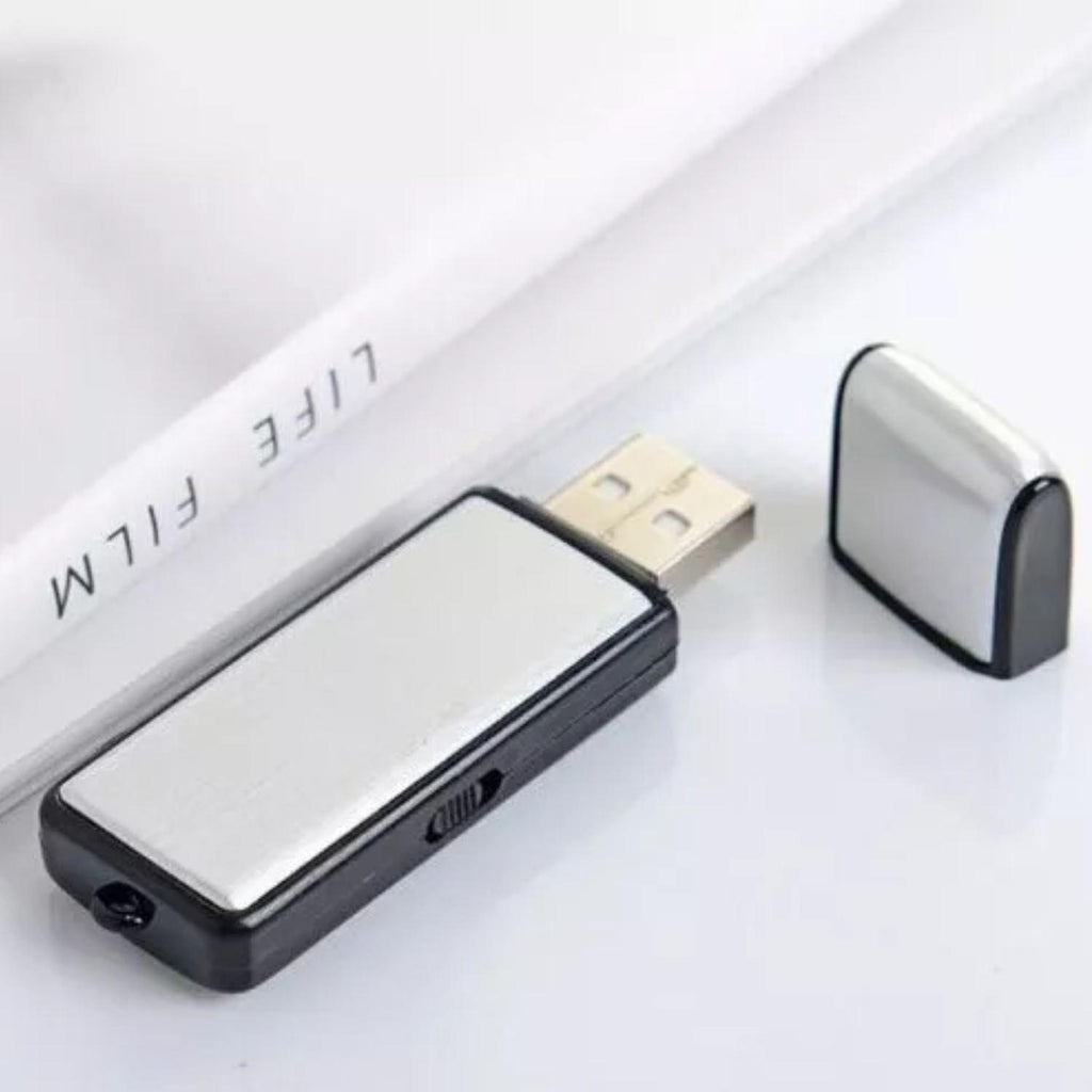 Grabadora de audio portátil y versátil, compatible con cualquier puerto USB (5V1A). Se puede usar de forma independiente una vez cargada, alcanzando carga completa en aproximadamente 2 horas, indicándose con luz azul. Cuenta con protección adicional mediante película verde en la carcasa que se retira al iniciar el dispositivo.